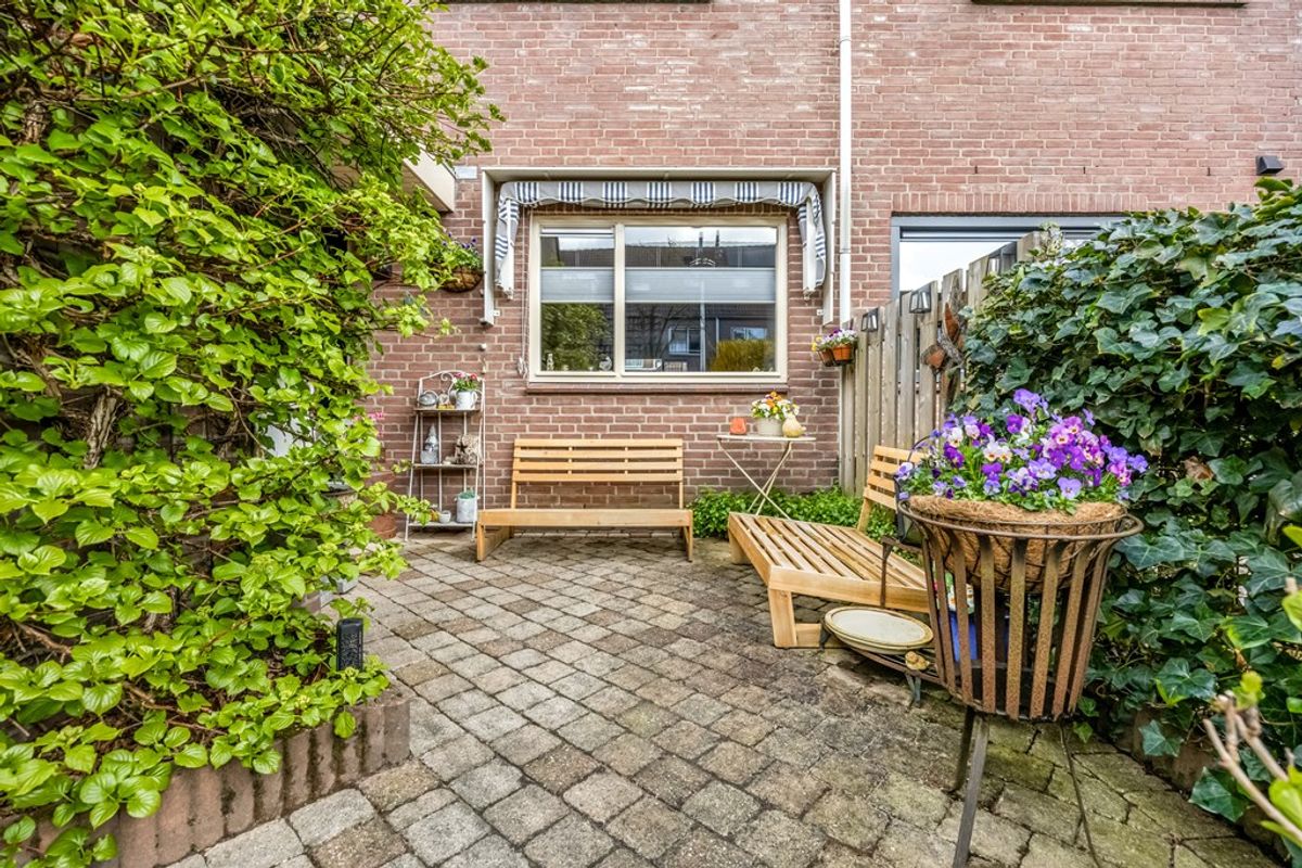 De fraai aangelegde voortuin zorgt voor extra privacy en een groene, rustige uitstraling. De diepe achtertuin, gelegen op het oosten, is verzorgd ingericht met een mooie mix van groen en bestrating. Hier geniet je van zon, rust en ruimte. Via de achterom bereik je eenvoudig de steeg.