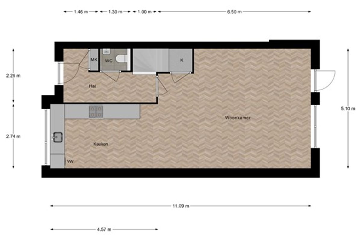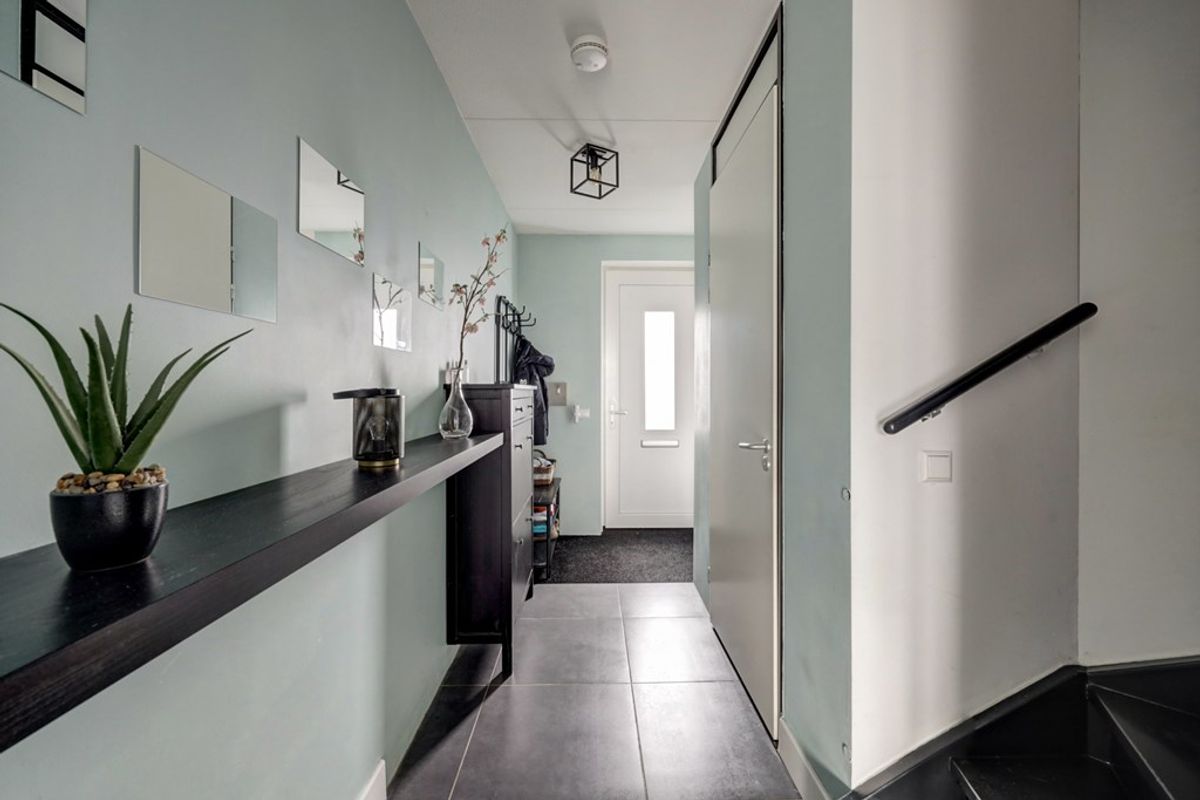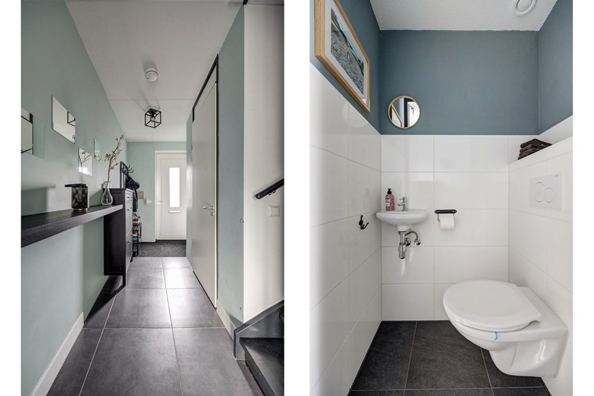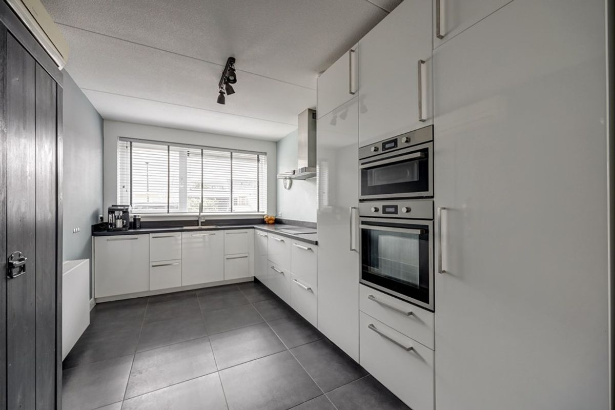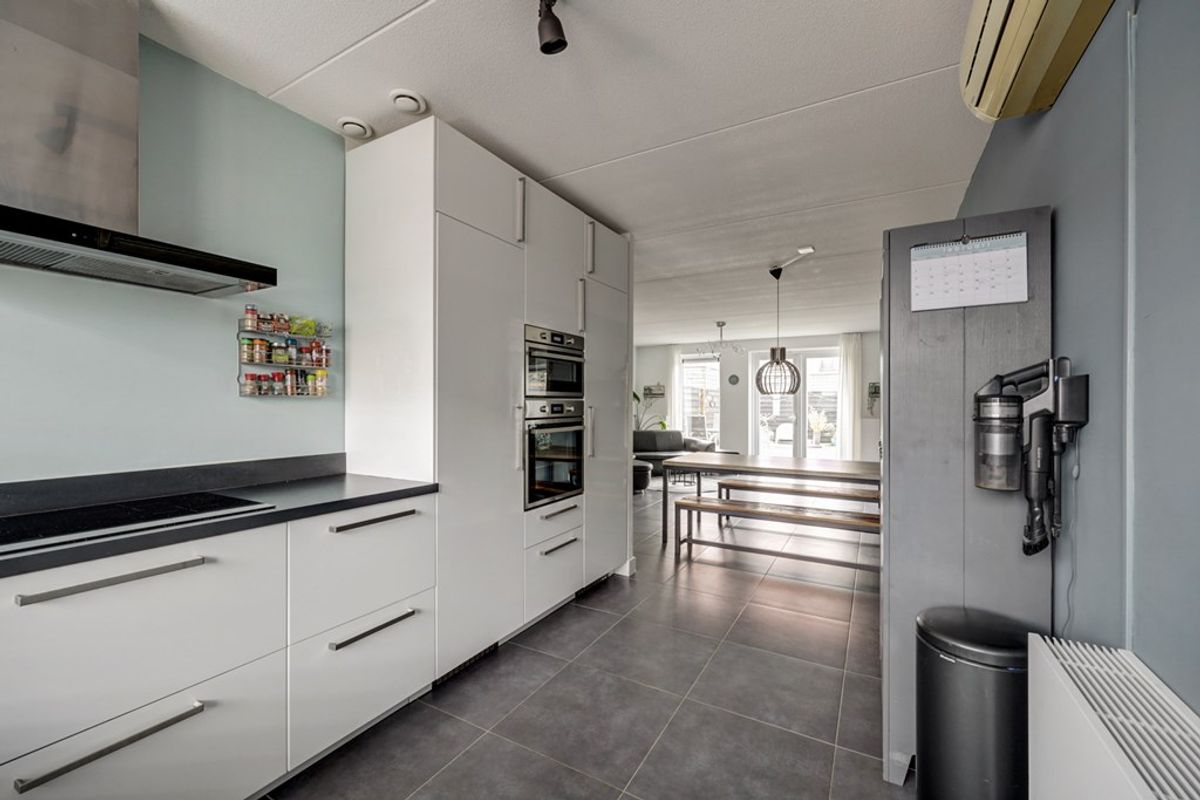 Terwijl de Kiekberg omhoog loopt en eindigt boven aan de dijk, rijd je langs verschillende type woningen. De privé parkeerplaats is gelegen naast het huis, grenzend aan het perceel. Het statige huizenblok imponeert en met een gevoel van trots kom je binnen in je nieuwe woning. In de hal liggen fraaie antracietgrijze plavuizen die mooi doorlopen in de woonkamer. Door de uitbouw is hier een mooie living ontstaan waar veel licht naar binnen komt via de openslaande deuren naar de tuin. De strakke keuken met hoogglans witte panelen en een donker werkblad beschikt over een inductie kookplaat, een RVS afzuigschouw, een riante koelkast en vriezer, een oven, een combimagnetron, een vaatwasser en een Quooker. Hier op de begane grond is een airco. Hoe fijn is dat! Een praktische trapkast zorgt voor de nodige opbergmogelijkheden.
