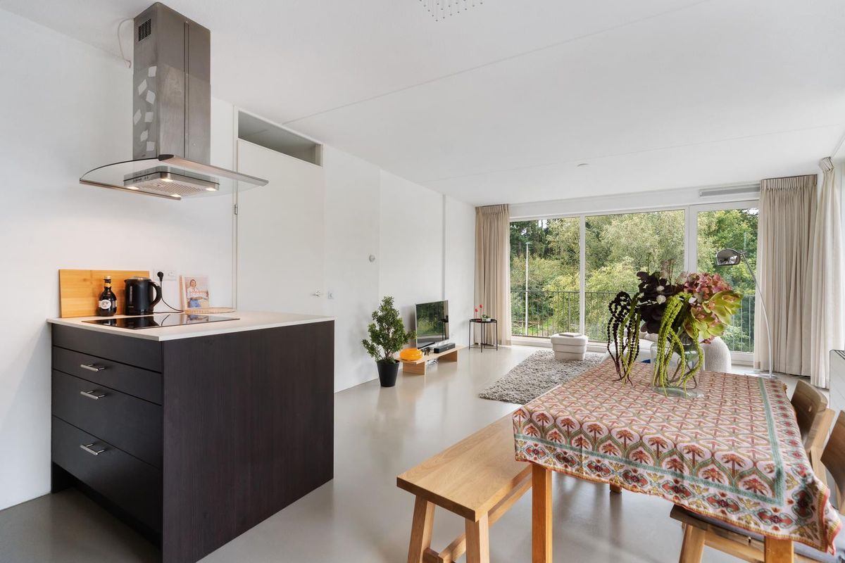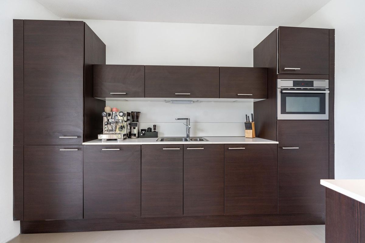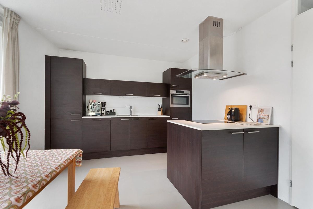 De open keuken sluit perfect aan bij de woonkamer en vormt het hart van de woning. Het moderne kookschiereiland, uitgerust met een inductieplaat en afzuigkap, maakt koken tot een plezier. Uiteraard zijn er ook een vaatwasser, koelkast, combi-oven/magnetron aanwezig. Extra pluspunt: vanuit de keuken stap je direct het balkon op. Een fijne plek om de dag te starten met een kop koffie of ’s avonds nog even te genieten van de buitenlucht.
