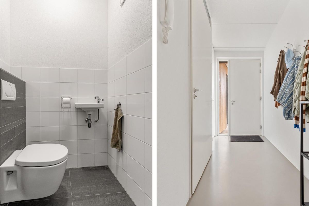 Eenmaal binnen stap je de hal in. Hier is ruimte om je jas en schoenen netjes op te bergen. Vanuit de hal heb je toegang tot alle vertrekken in de woning. Ook bevinden zich hier het toilet en de meterkast.
