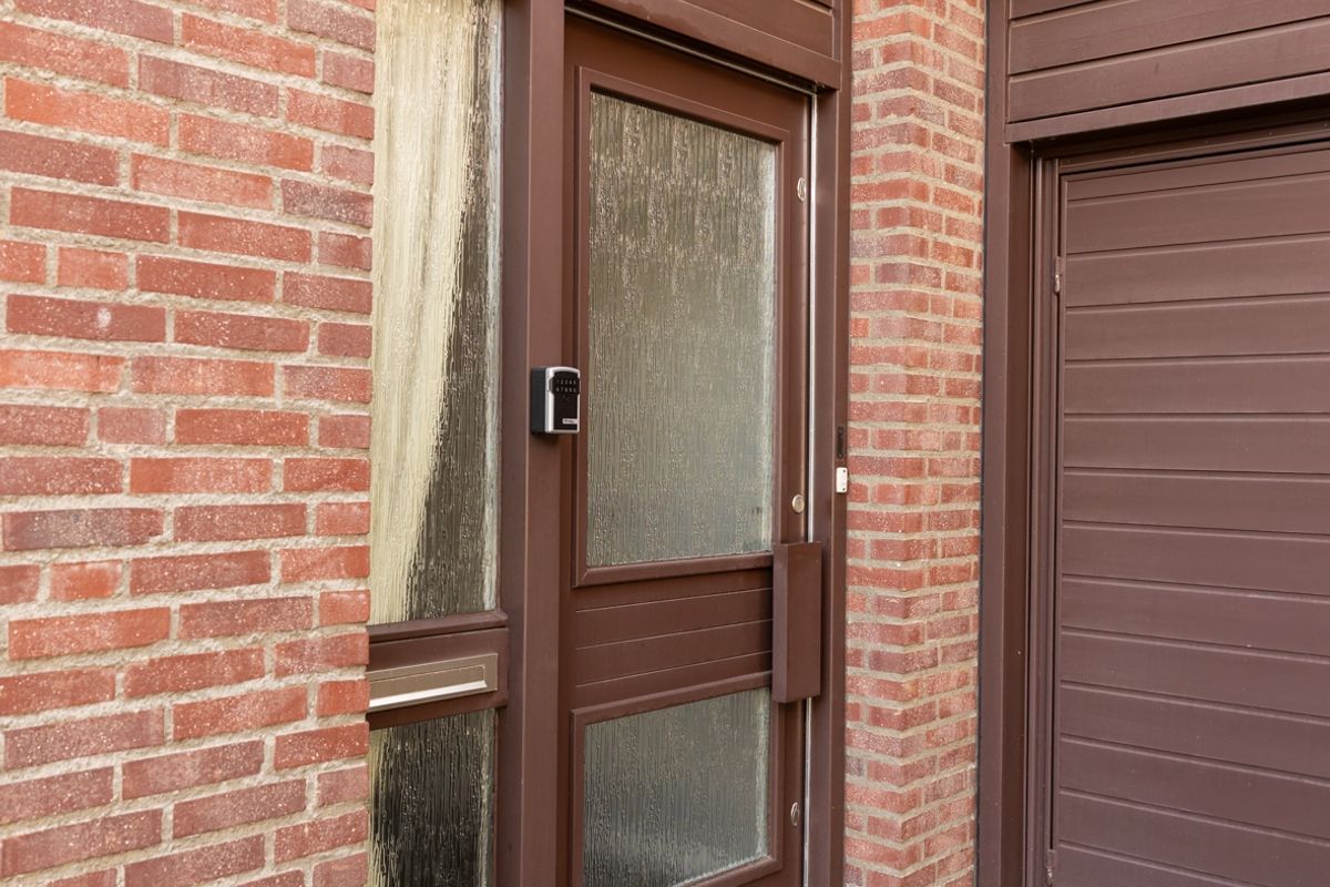 Vanuit de tuin én de oprit bereik je de verwarmde garage met stalen kantelpoort en loopdeur. De technische ruimte met de cv-installatie (eigendom, bouwjaar 2023) is eveneens van buitenaf bereikbaar.