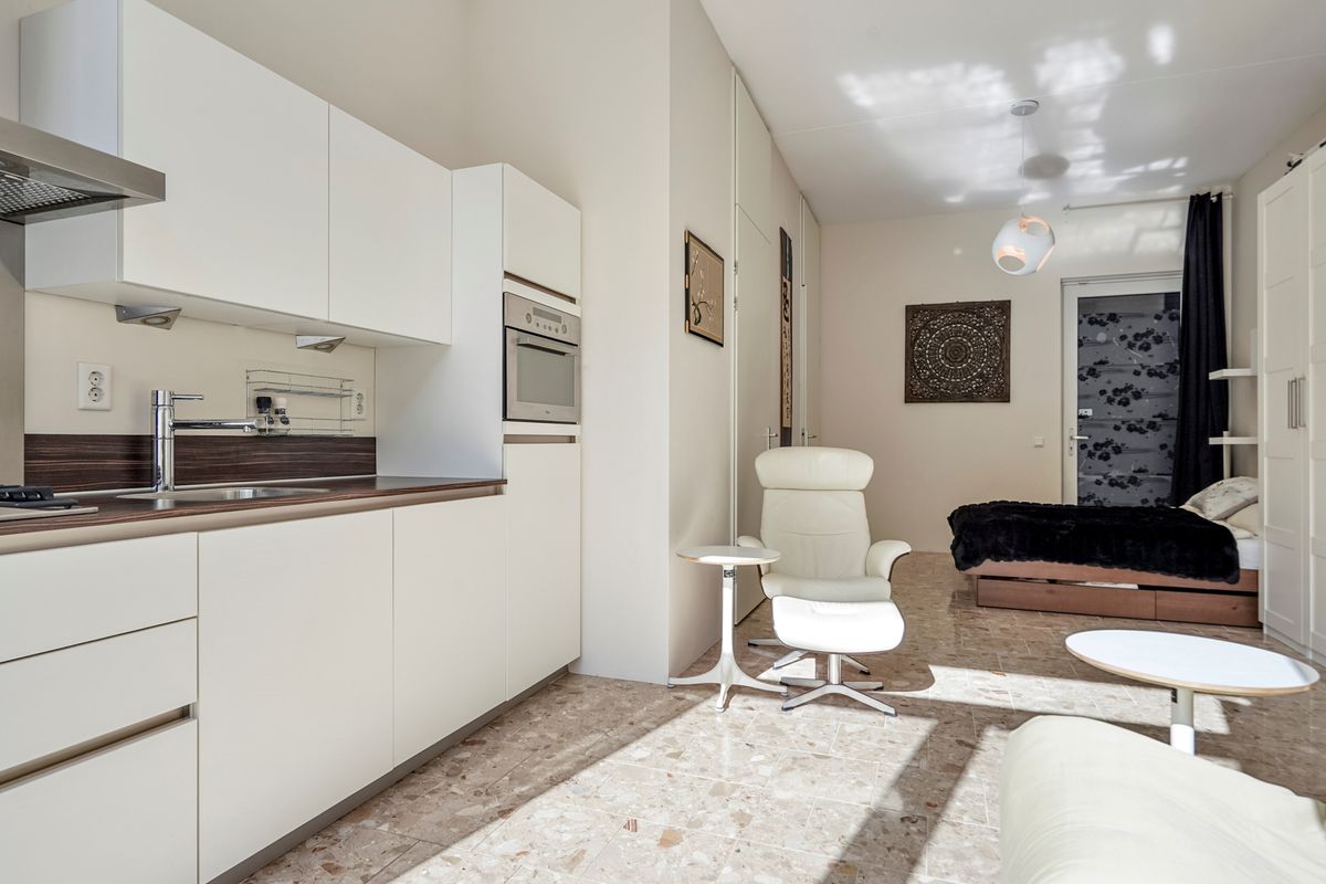 Deze modern afgewerkte studio is gelegen op de begane grond van het stijlvolle complex Riga. De ligging en de luxe afwerking en faciliteiten maken van deze studio een unieke woonplek. De studio beschikt onder meer over een complete keuken en moderne badkamer, een eigen parkeerplaats. Daarnaast kun je als eigenaar van alle voorzieningen van het complex gebruikmaken waaronder het verwarmde buitenzwembad met ligweide in de groene stadstuin en de gezamenlijke wasruimte. Het stadshart ligt letterlijk om de hoek, dus je bent binnen een enkele minuten in het levendige centrum.