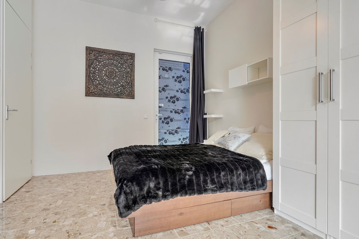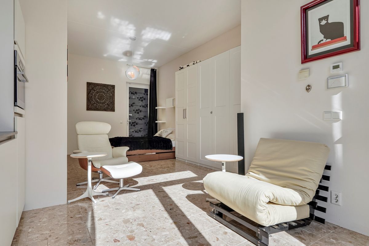 Eigentijdse, instapklare studio gelegen in het stadshart, met eigen parkeerplaats en luxe voorzieningen zoals een zwembad met ligweide in de groene stadstuin.