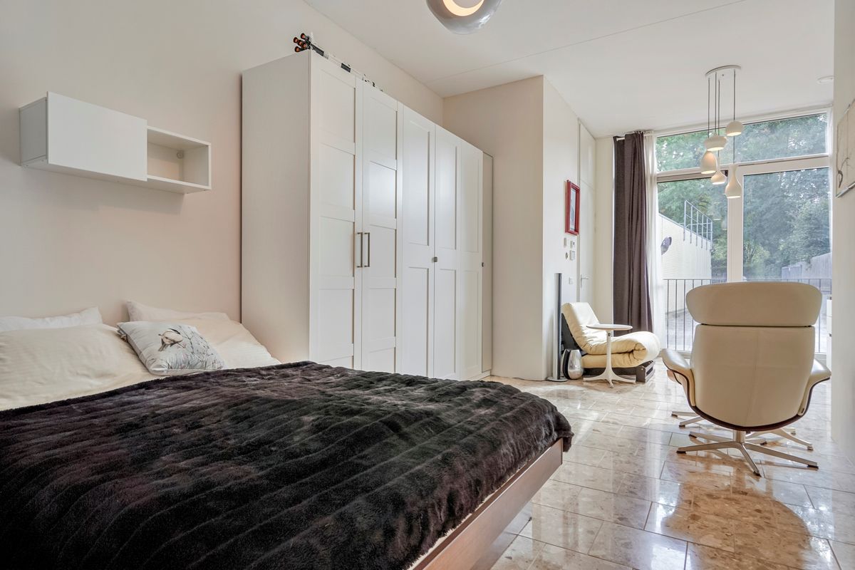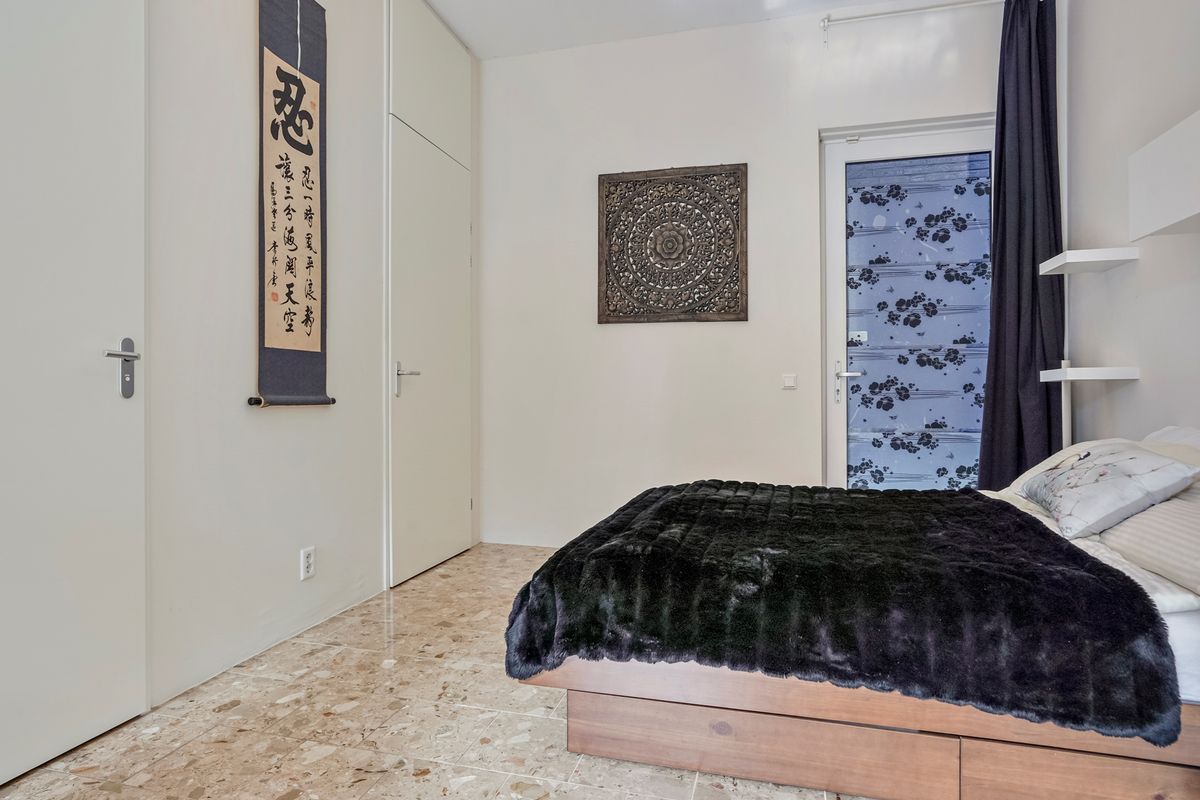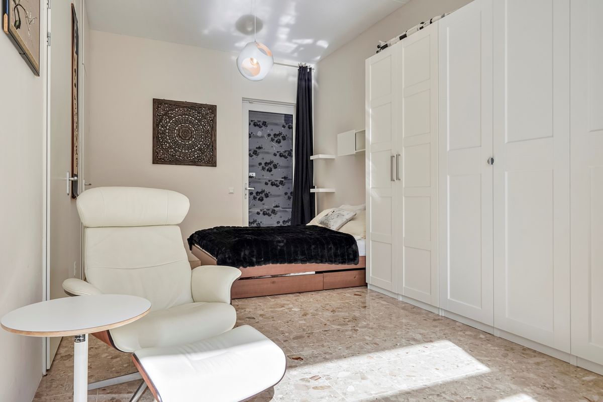Tevens is via de woon-/slaapkamer toegang tot de bergruimte. In deze grote kast is veel opbergruimte. De meterkast en de combiketel zijn er geplaatst en er is met een praktisch en flexibel opbergsysteem veel ruimte gecreëerd om voorraad en spullen op te bergen. Hier bevindt zich ook een aansluitpunt voor de wasmachine (mocht je geen gebruik willen maken van de gezamenlijke wasruimte).