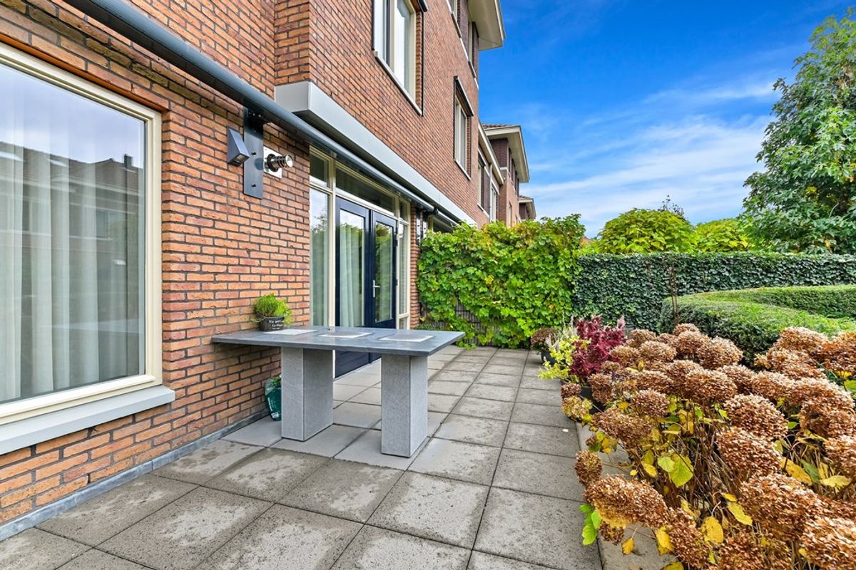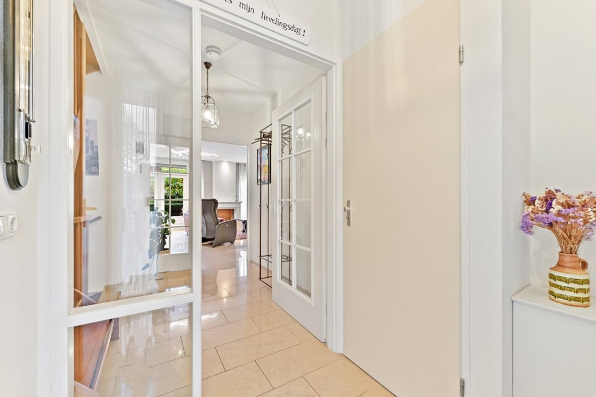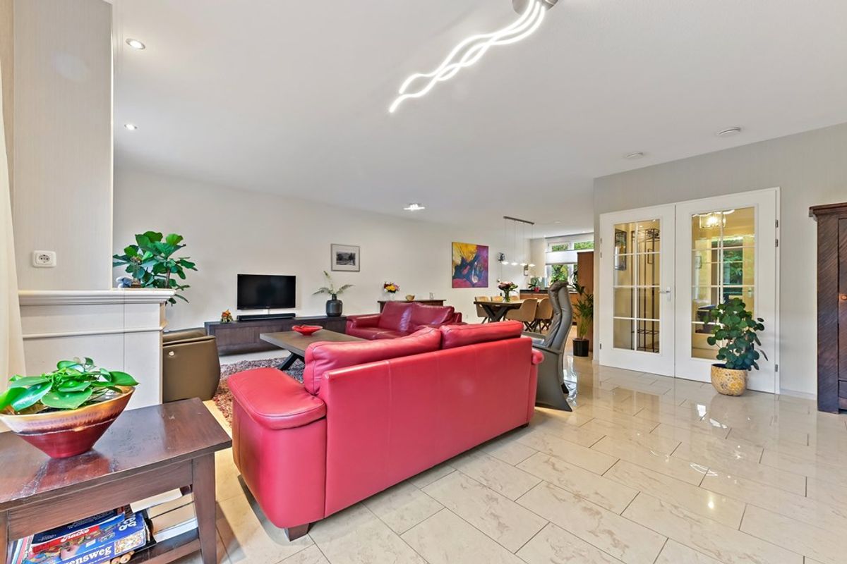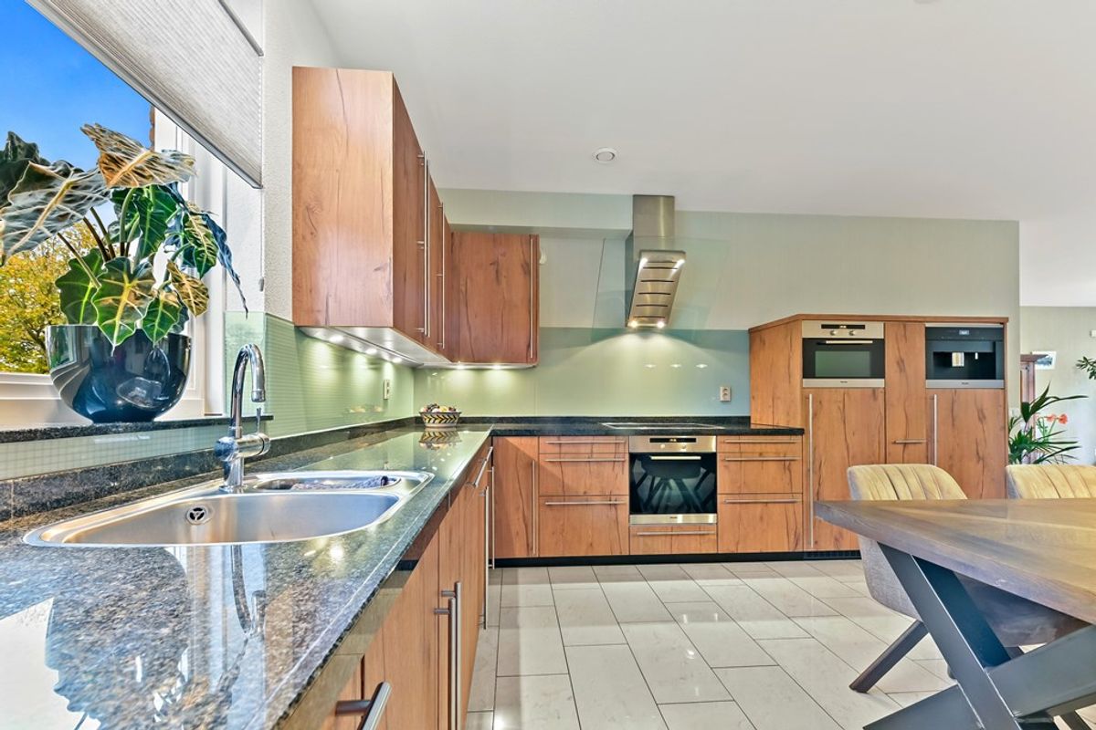 Via de nette entree kom je in de royale hal met toilet en meterkast. Gang met trap naar de garage en slaapverdiepingen. Via dubbele deuren kom je in de ruime woonkamer welke heerlijk licht is dankzij de grote raampartijen en openslaande deuren naar de zonnige achtertuin met achterom. De woonkamer is voorzien van een gestukt plafond met inbouwspots en sfeervolle haard. Aan de voorzijde bevindt zich de moderne woonkeuken, voorzien van hoogwaardige inbouwapparatuur en veel bergruimte. De woonkamer en keuken zijn samen ca. 62 m2 groot en voelt extra ruimtelijk aan door de plafondhoogte van maar liefst 2,70 meter! De tuin is fraai aangelegd met veel groen, een terras, sierbestrating en een vrijstaande schuur. Aan de achterzijde is de tuin ontsloten via een voetpad.