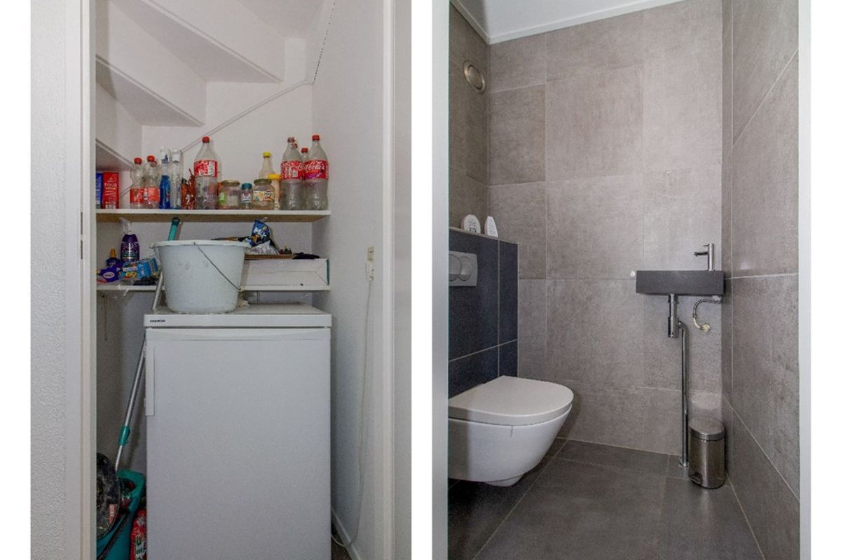 Via een tweede hal zijn het toilet, de trapopgang en een handige trapkast bereikbaar.