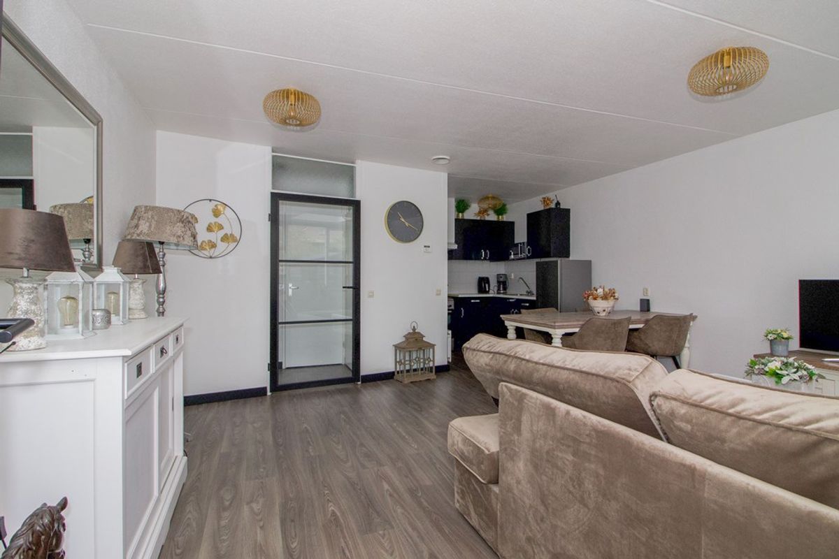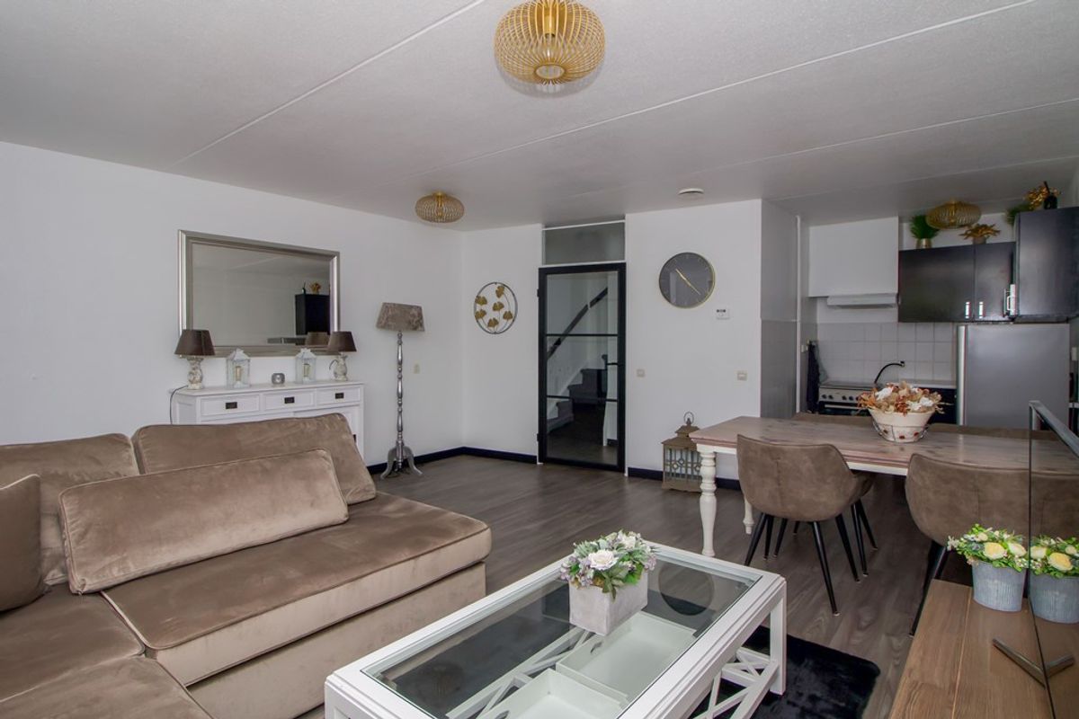 Entree via de hal met meterkast en toegang tot de inpandige berging. De lichte woonkamer biedt veel ruimte en is aan de achterzijde voorzien van een uitbouw. Aan de voorzijde bevindt zich de open keuken in hoekopstelling.