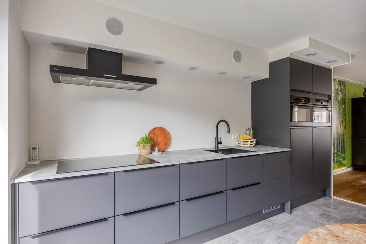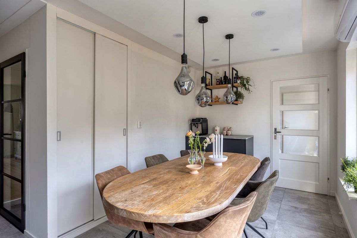 De keuken is in 2021 vernieuwd en uitgevoerd in een moderne opstelling. Voorzien van diverse inbouwapparatuur (o.a. een stoomoven, magnetronoven, inductie kookplaat, een Quooker, inbouwledverlichting en bluetooth geluidsboxen) en een aparte koffiecorner, is dit een heerlijke plek voor kookliefhebbers. Aansluitend vind je de praktische bijkeuken met extra bergruimte en aansluitingen voor wasmachine en droger.