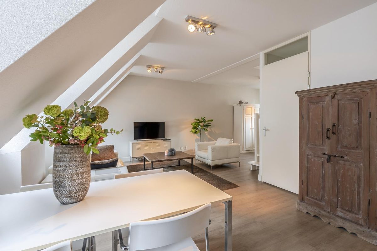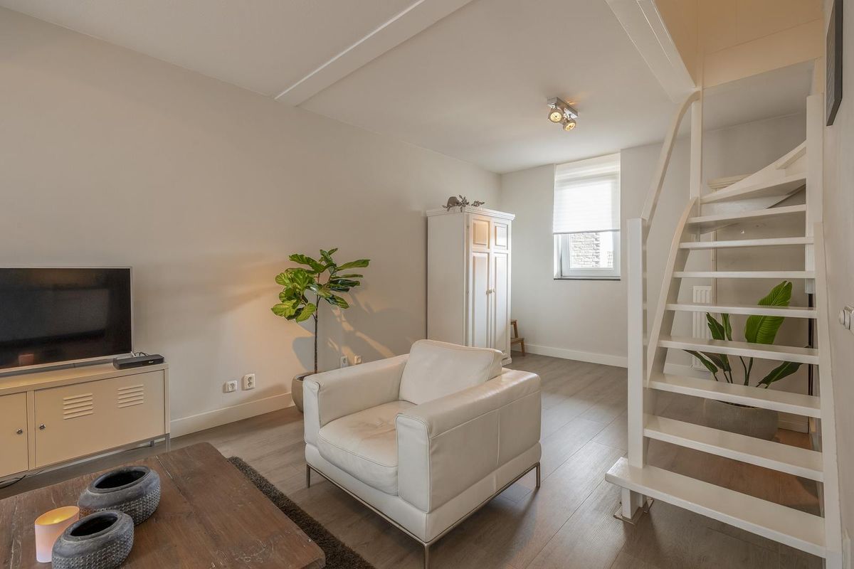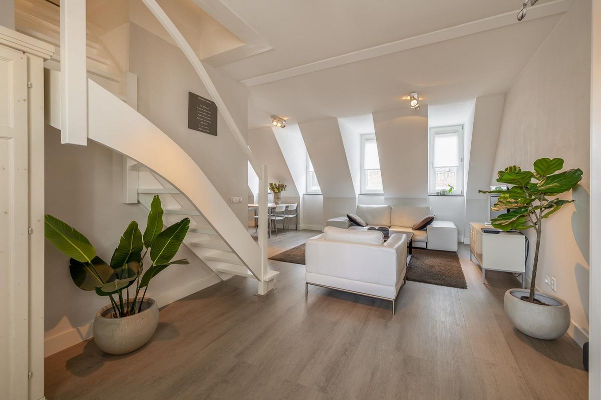 De vaste trap in de woonkamer biedt toegang tot de verdieping.