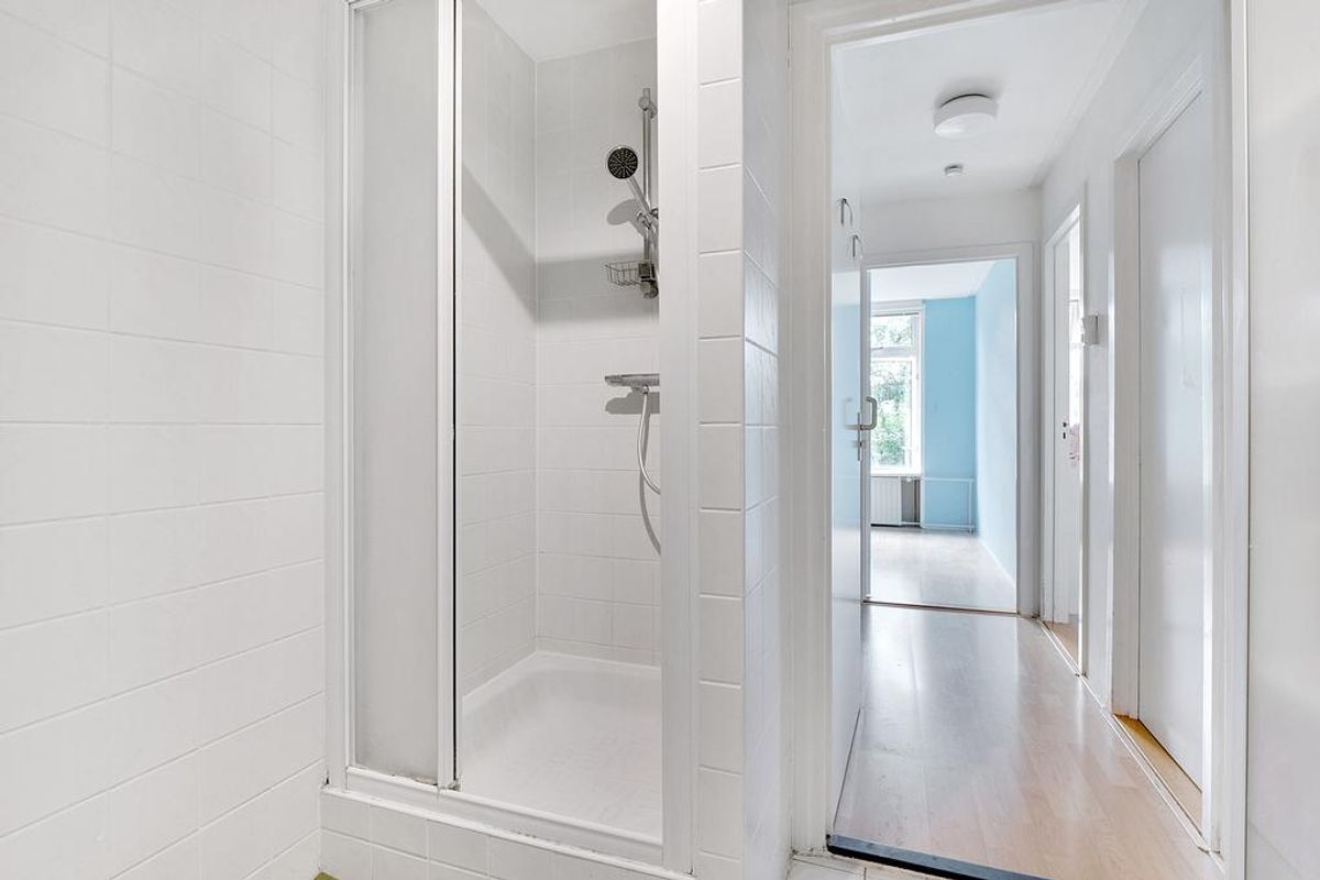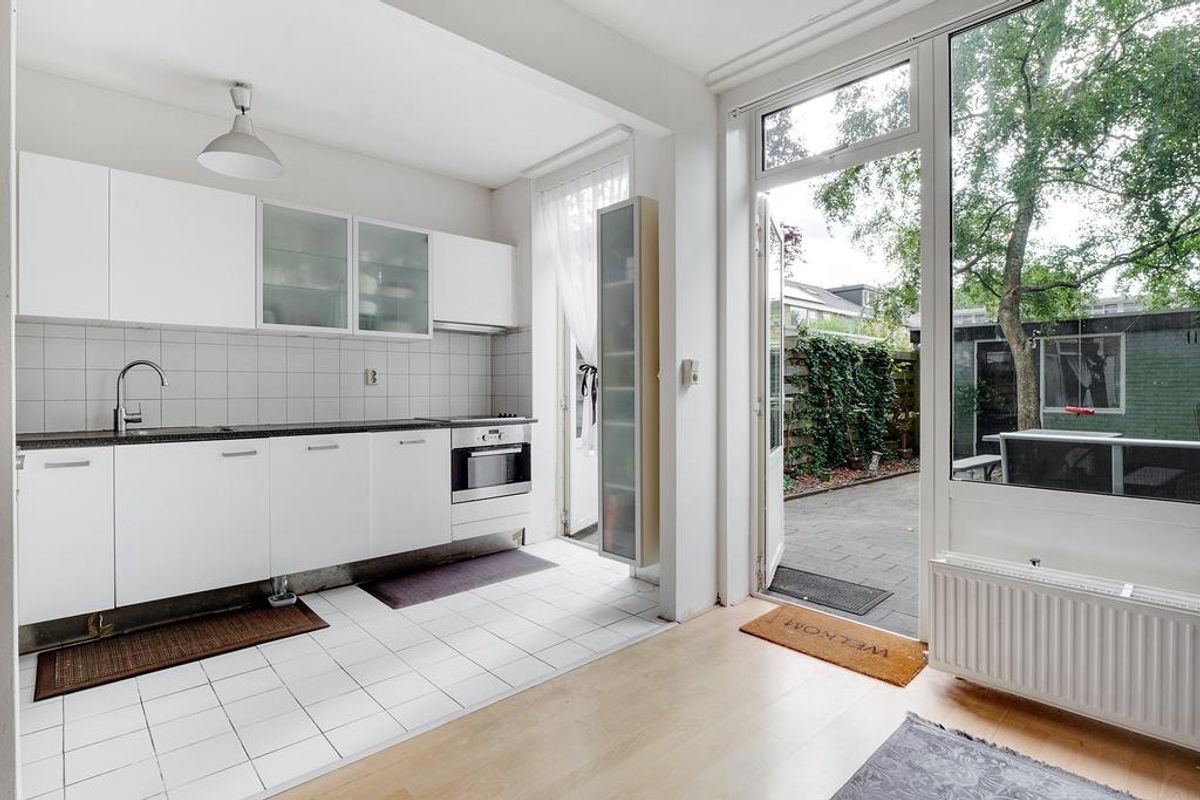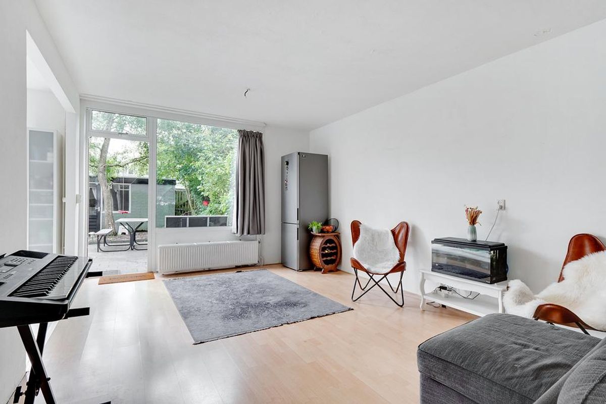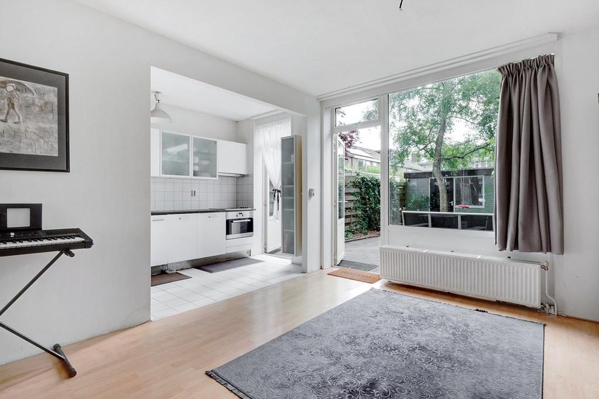 Entree met meterkast, trappenkast en toilet, toegang tot de brede, zonnige woonkamer met open keuken. Deze beschikt over inbouwapparatuur (namelijk een vaatwasser). Vanuit de keuken en woonkamer bereikt u de diepe, groene achtertuin met een vrijstaande, stenen berging aan de achterzijde.