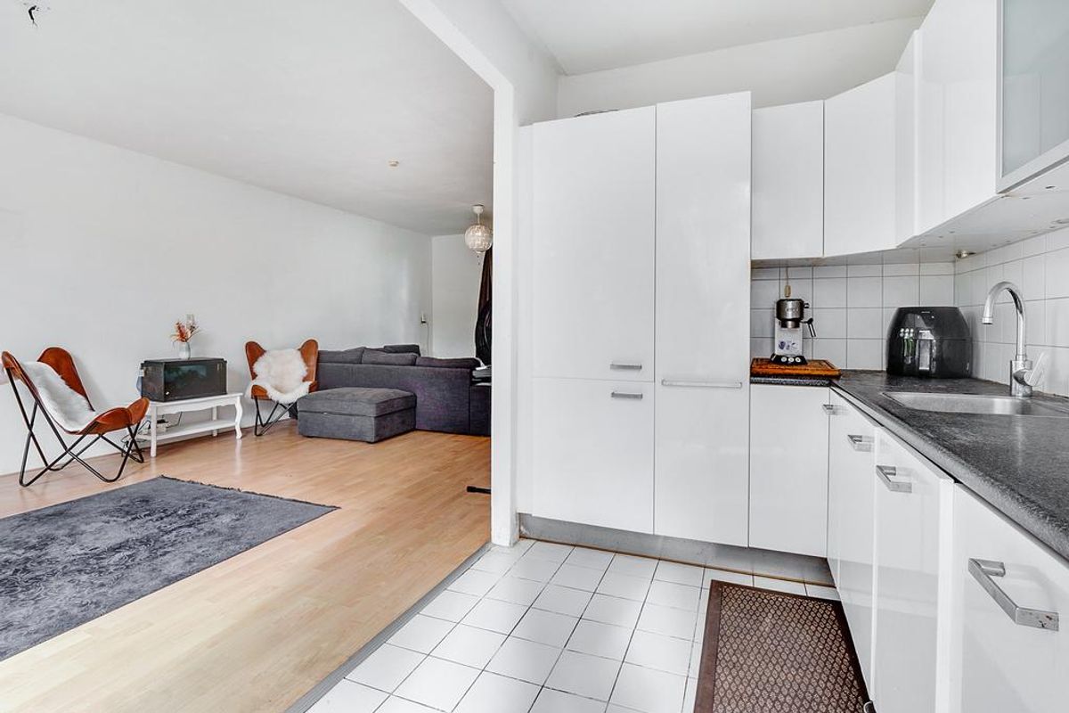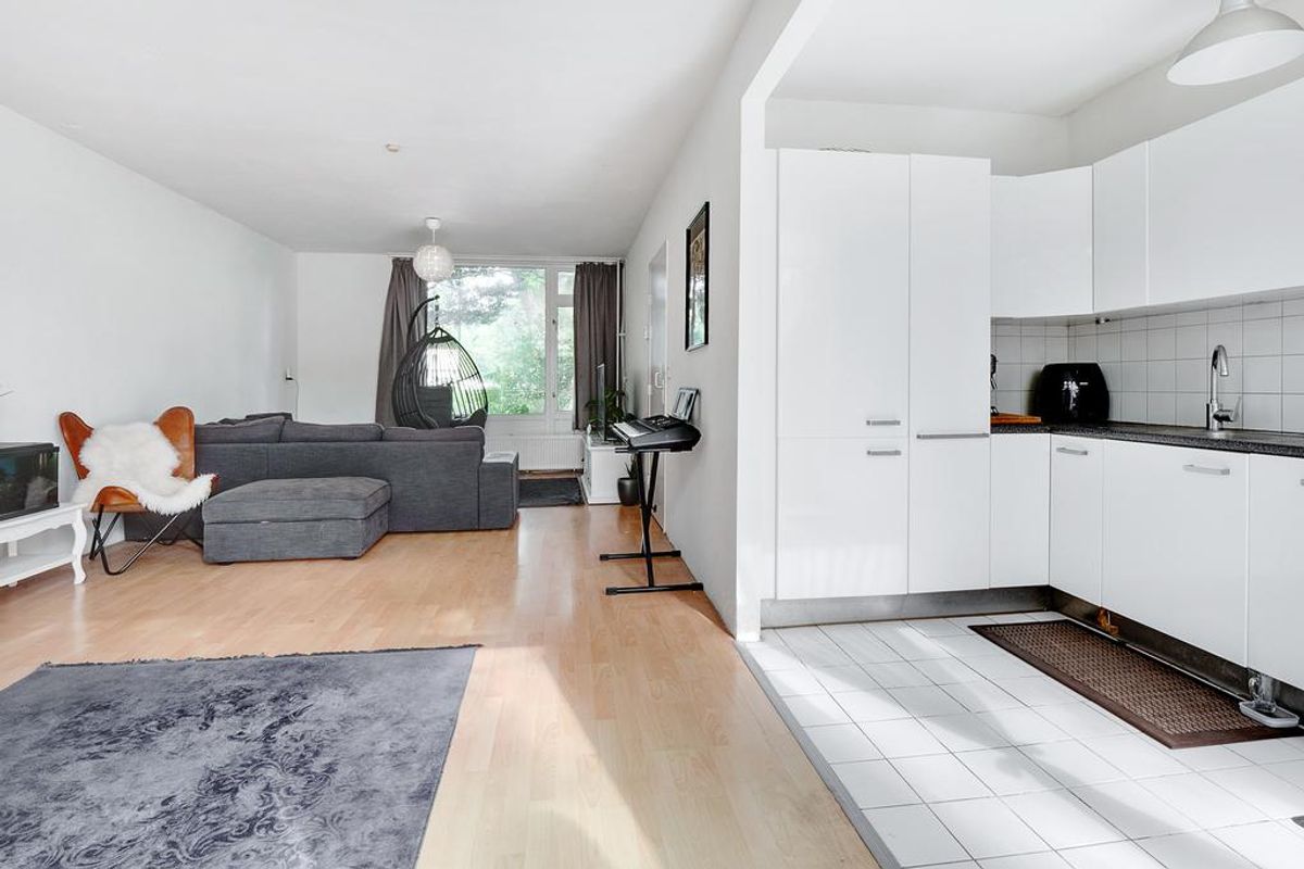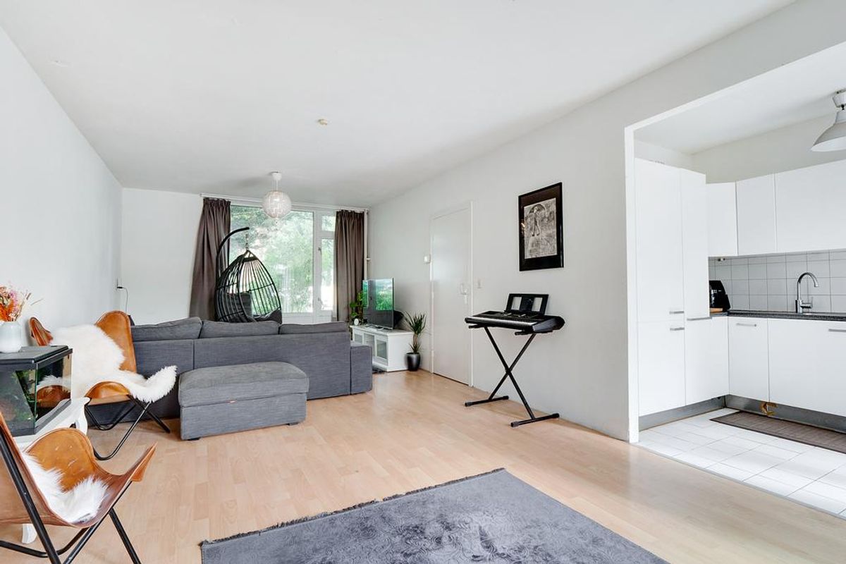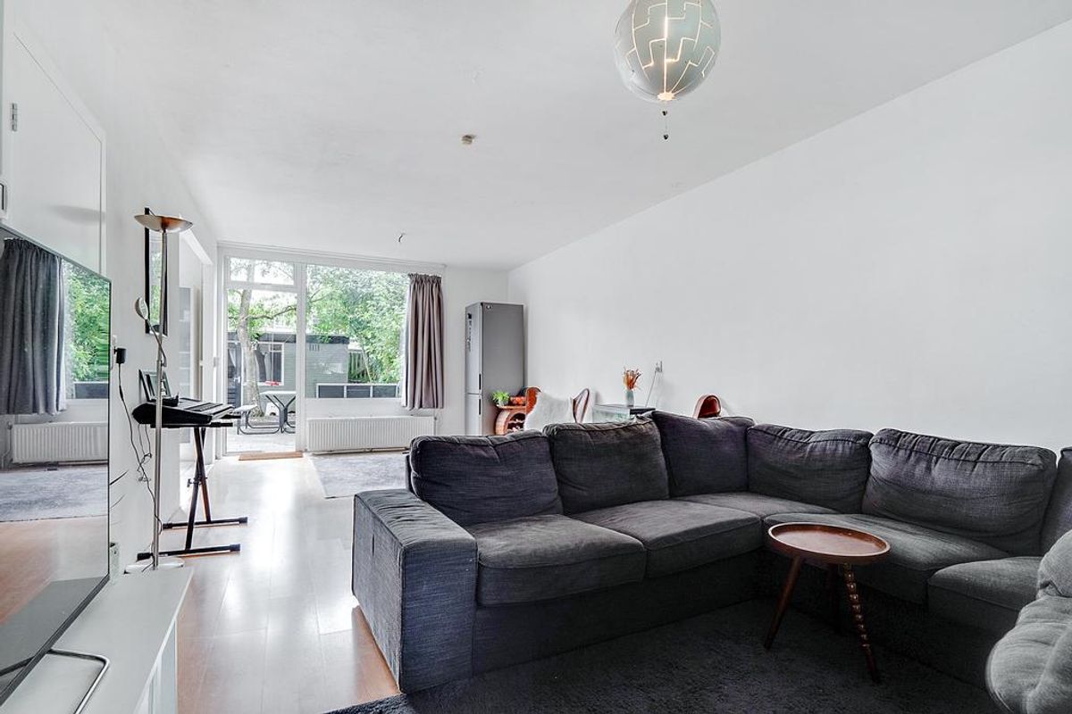 Entree met meterkast, trappenkast en toilet, toegang tot de brede, zonnige woonkamer met open keuken. Deze beschikt over inbouwapparatuur (namelijk een vaatwasser). Vanuit de keuken en woonkamer bereikt u de diepe, groene achtertuin met een vrijstaande, stenen berging aan de achterzijde.