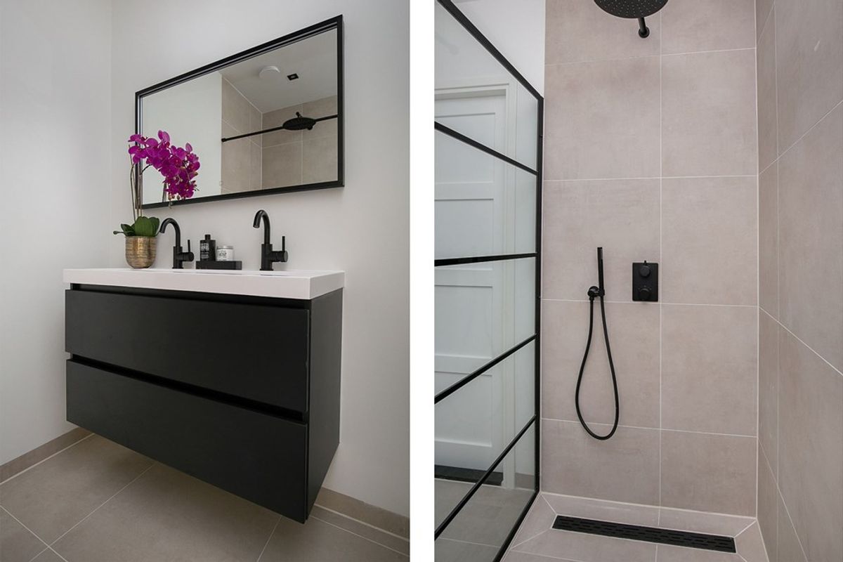 Communal entrance with stairs to the 1st floor. Hall with separate toilet, access to first bedroom, master bedroom, bathroom, separate toilet, and the living room. Spacious and bright living room with dining area and modern, black design, open kitchen. The kitchen is fitted with a quality induction stove and sink. Large cupboard wall with built-in fridge/freezer, Siemens oven, dishwasher. The balcony can be accessed though the bedroom. Luxurious bathroom featuring a walk-in shower, sink with storage drawers, mirror and towel radiator.