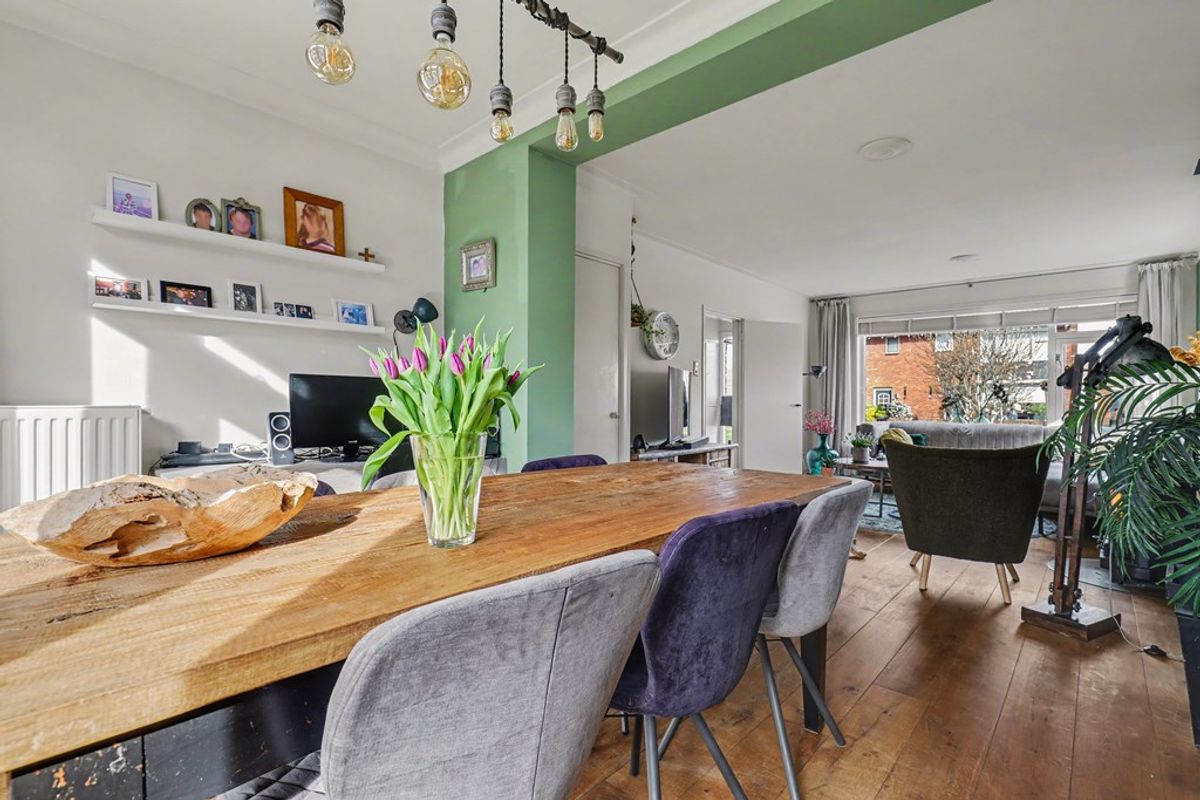 In een van de mooiste straten van Lienden staat deze sfeervolle twee-onder-een-kapwoning. De brede straat, gelegen nabij de winkels en de oude dorpskern, geeft een heerlijk gevoel van thuiskomen. De gezellige woonkamer is voorzien van een houten vloer en is aan de tuinzijde uitgebouwd.