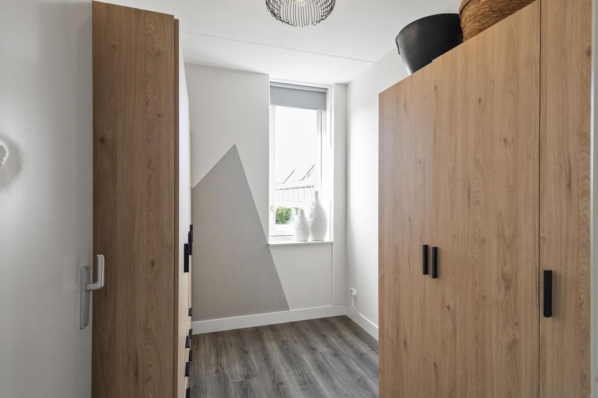 De zolderverdieping is bereikbaar via een vaste trap. Op de voorzolder tref je de aansluiting van de cv-ketel, omvormer zonnepanelen, ventilatiebox en de aansluitingen van het witgoed. In 2024 is hier een fraaie kunststof dakkapel met elektrische rolluiken geplaatst over de gehele breedte van de achtergevel. De vierde slaapkamer is zodoende extra ruim en licht. Onder het schuine deel zijn vaste kasten gerealiseerd.