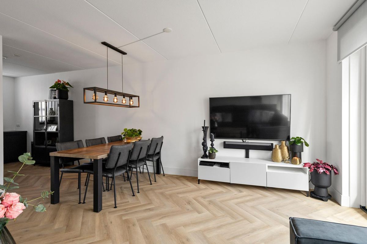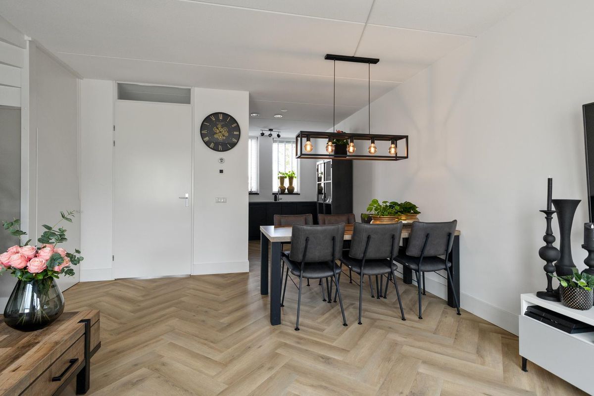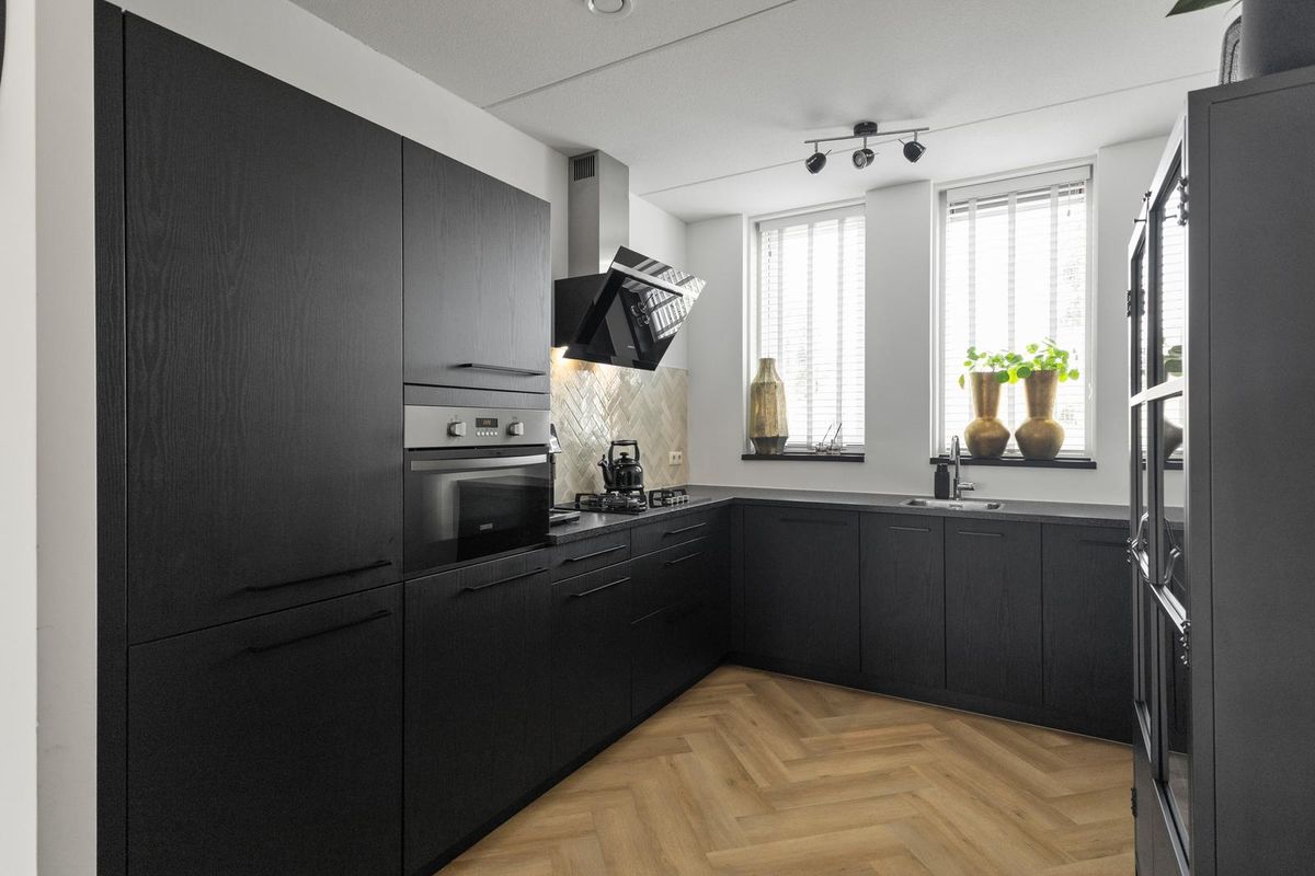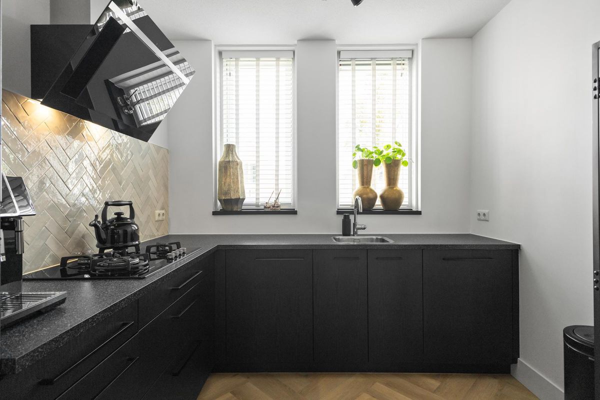 Eenmaal binnen valt meteen de verzorgde afwerking op: strak, modern en met oog voor detail. Een lichte, tuingerichte woonkamer en aan de voorzijde een stijlvolle open keuken, die van alle gemakken is voorzien. De keuken is uitgevoerd met een gaskookplaat, schuine wandafzuigkap, koel-vriescombinatie, combimagnetron en vaatwasser. Er is al een aansluiting ten behoeve van inductie koken aanwezig.