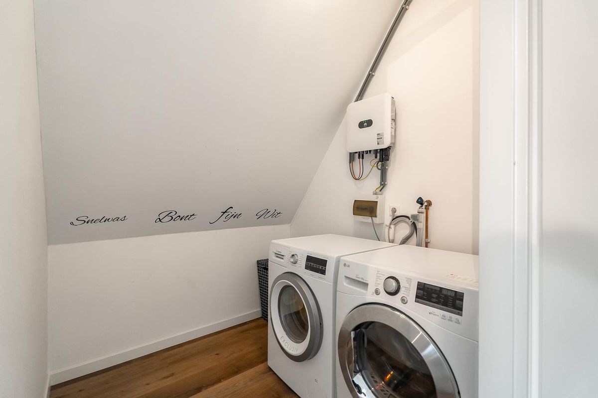 Het witgoed is opgesteld in een kast op de overloop.