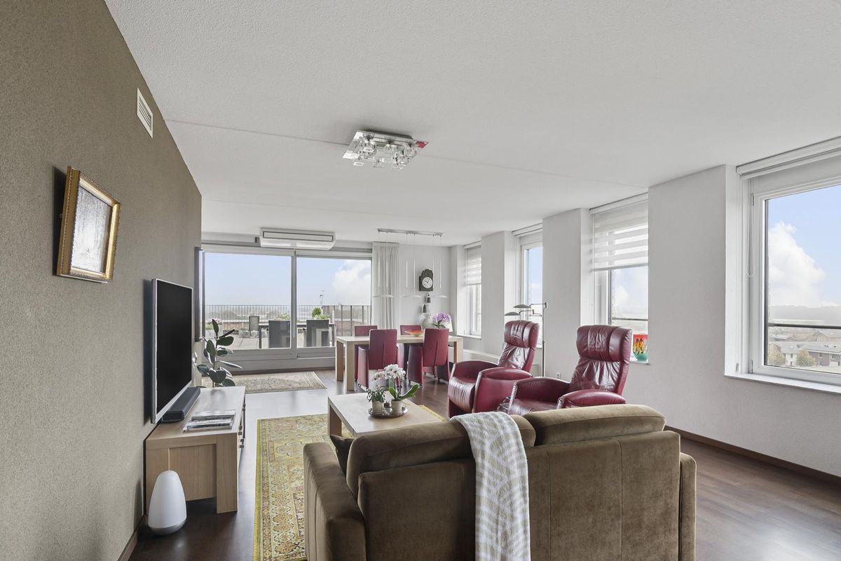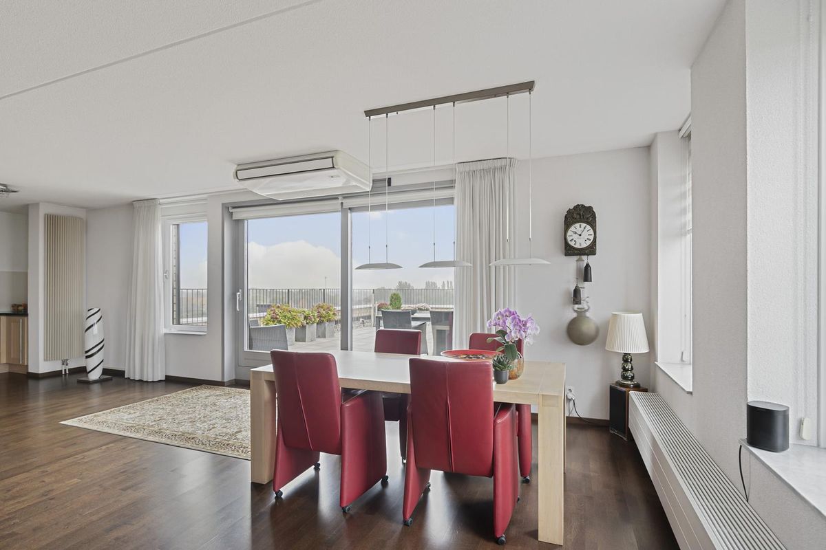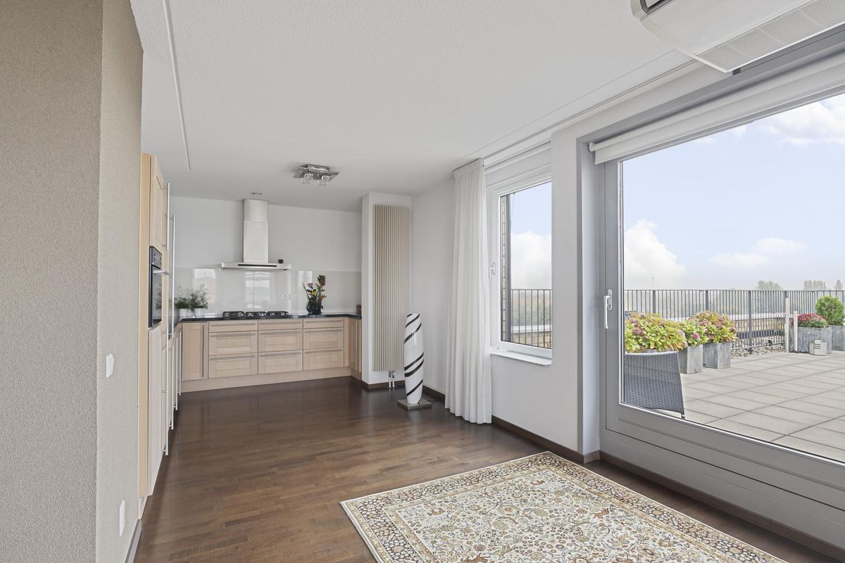 Wonen op het hoogste niveau: riant penthouse met 2 dakterrassen en panorama view over Huissen, Arnhem en zelfs Nijmegen! Op de zesde etage van appartementencomplex ‘Terra’ is dit royale appartement te vinden. Het gebouw maakt direct indruk: deels oprijzend uit het water vormt het een architectonische blikvanger in de wijk Loovelden. In de onderbouw bevinden zich de privéberging en eigen parkeerplaats. Helemaal bovenin ligt dit exclusieve penthouse – het enige appartement op de etage. De royale living met schuifpui naar een van de twee dakterrassen vormt het hart van de woning. Een open keuken, 2 slaapkamers en een nette badkamer maken het geheel compleet.