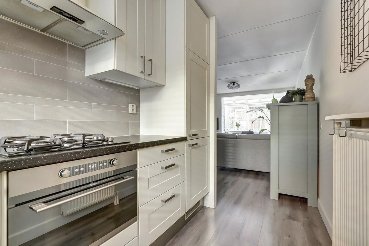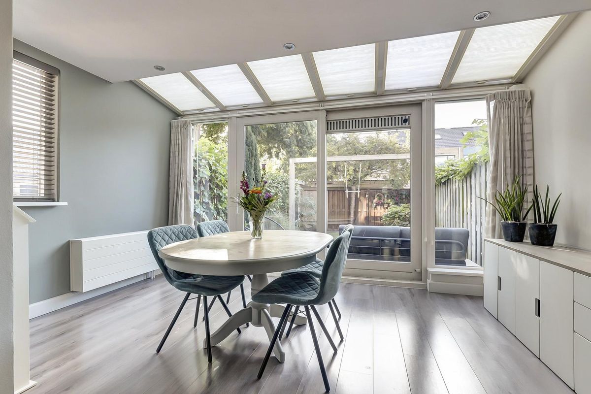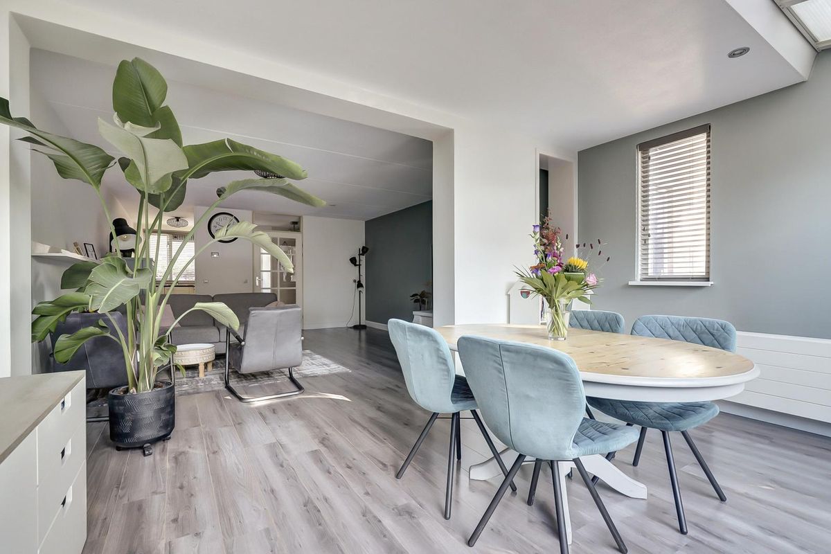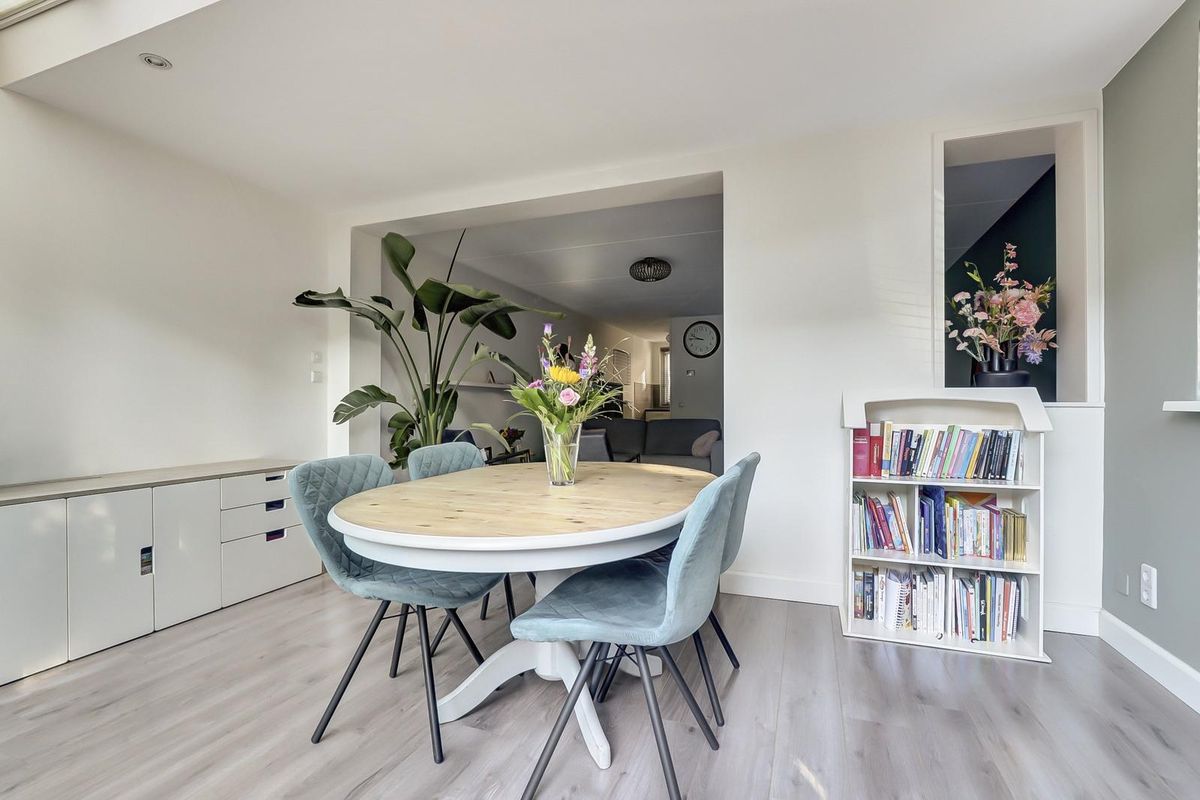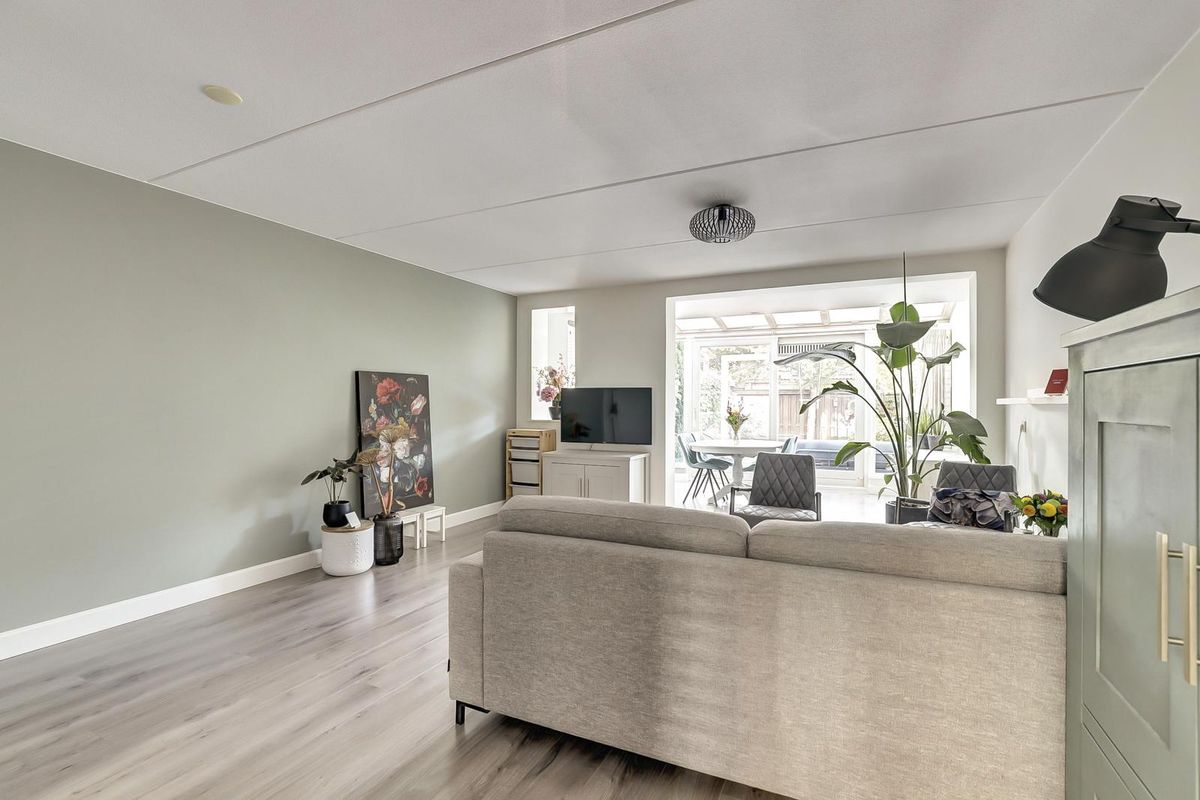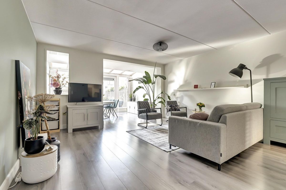 De woning verrast vooral door de lichte, uitgebouwde woonkamer. Dankzij de royale uitbouw aan de achterzijde geniet je hier van extra ruimte en veel daglicht. De schuifpui verbindt binnen en buiten moeiteloos: je stapt direct je zonnige tuin in.
