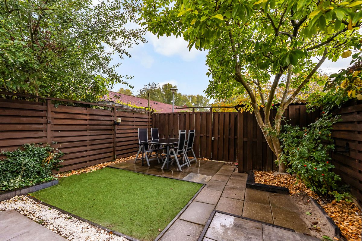 De tuin is lekker breed, ideaal voor kinderen om te spelen. Een zeer fijne toevoeging is het plantsoen achter de woning. Hierdoor ontstaat veel privacy in de tuin en zijn er ook geen directe achterburen aanwezig.