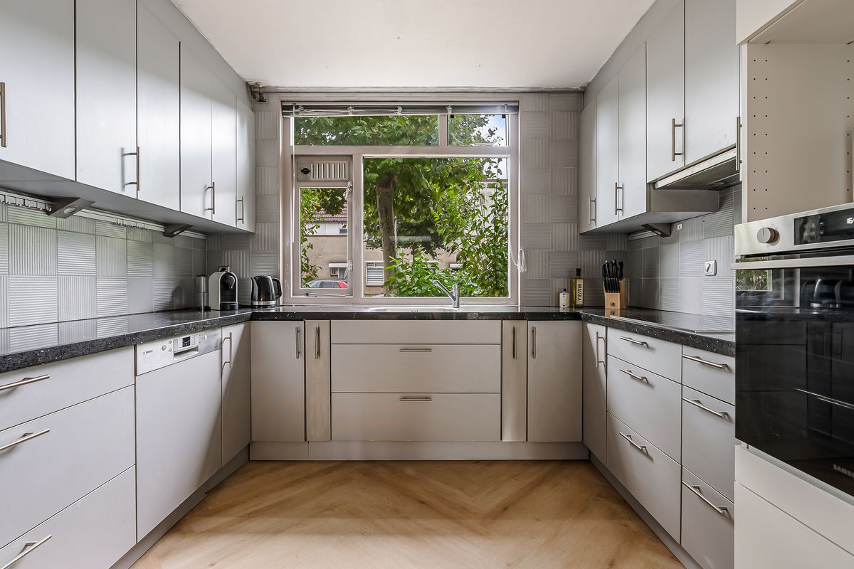 Bij binnenkomst in de hal heb je toegang tot het toilet, de meterkast, trapopgang naar de eerste verdieping en de woonkamer. De woonkamer is heerlijk ruim met een breedte van 5,5 en een lengte van ruim 7 meter. De zithoek is aan de tuinkant gelegen en is erg licht door de grote raampartij en de fijne lichtkoepel. Leuk extra is de berging aan de achterzijde welke ook goed in gebruik te nemen is als speelkamer of thuis werkplek. Aan de voorkant van de woning is de keuken gelegen. De keuken is voorzien van diverse inbouwapparatuur. De volgende inbouwapparatuur is aanwezig: oven (2024), inductie kookplaat, afzuigkap en vaatwasser. Een perfecte plek om heerlijke te kokkerellen.