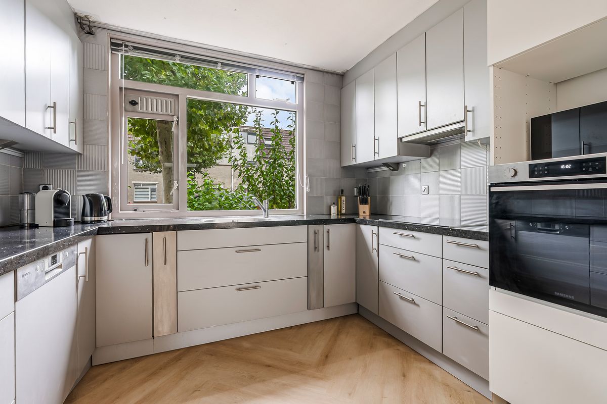 Vanuit de keuken heb je een leuk uitzicht over de straat.
