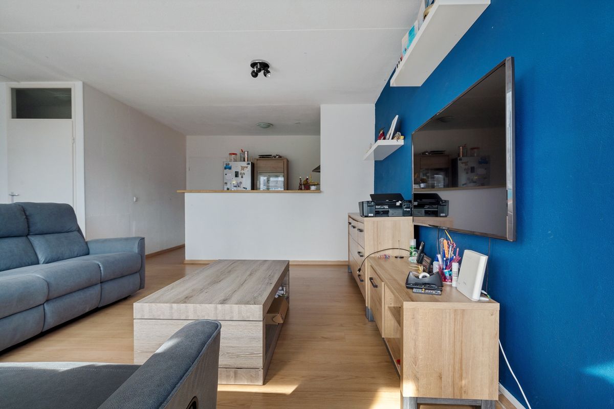 Via de ruime hal kom je in de royale woon- eetkamer. Deze ruime woonkamer is voorzien van veel lichtinval door de grote ramen. Via een deur bereik je het zonnig gelegen en woningbreed balkon (op het zuiden) met veel privacy. De ideale plek om te genieten van de zon en het uitzicht. De keuken is voorzien van diverse inbouwapparatuur zoals een combi-magnetron, een oven, RVS koel- vriescombinatie, fornuis en afzuigkap. Vanuit de woonkamer bereik je een hal met toegang tot 2 ruime slaapkamers, een separaat toilet en de moderne badkamer.