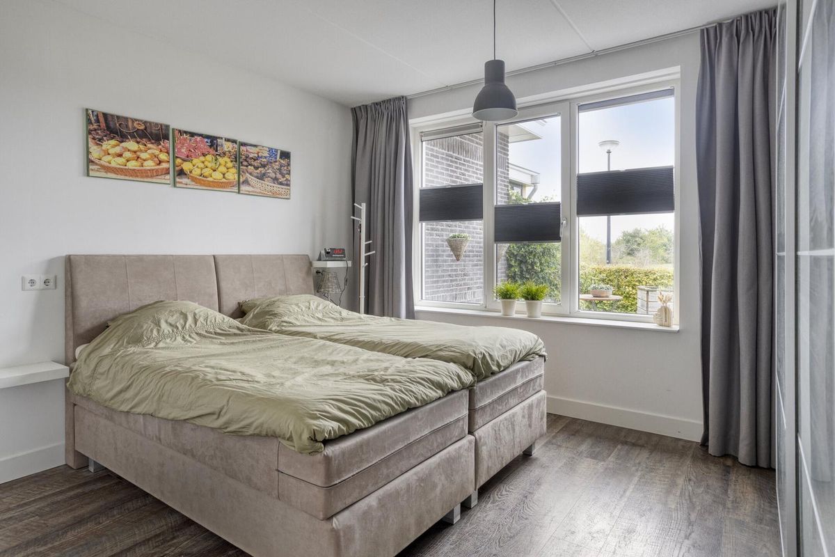 Vanuit de hal is de slaapkamer op de begane grond te bereiken. Deze slaapkamer heeft een oppervlakte van circa 14 m2 en toegang naar de badkamer. De lichte badkamer is compleet afgewerkt met een royale inloopdouche met regen- en handdouche en drainagegoot, 2e wandtoilet, vaste wastafel met meubel en designradiator.
