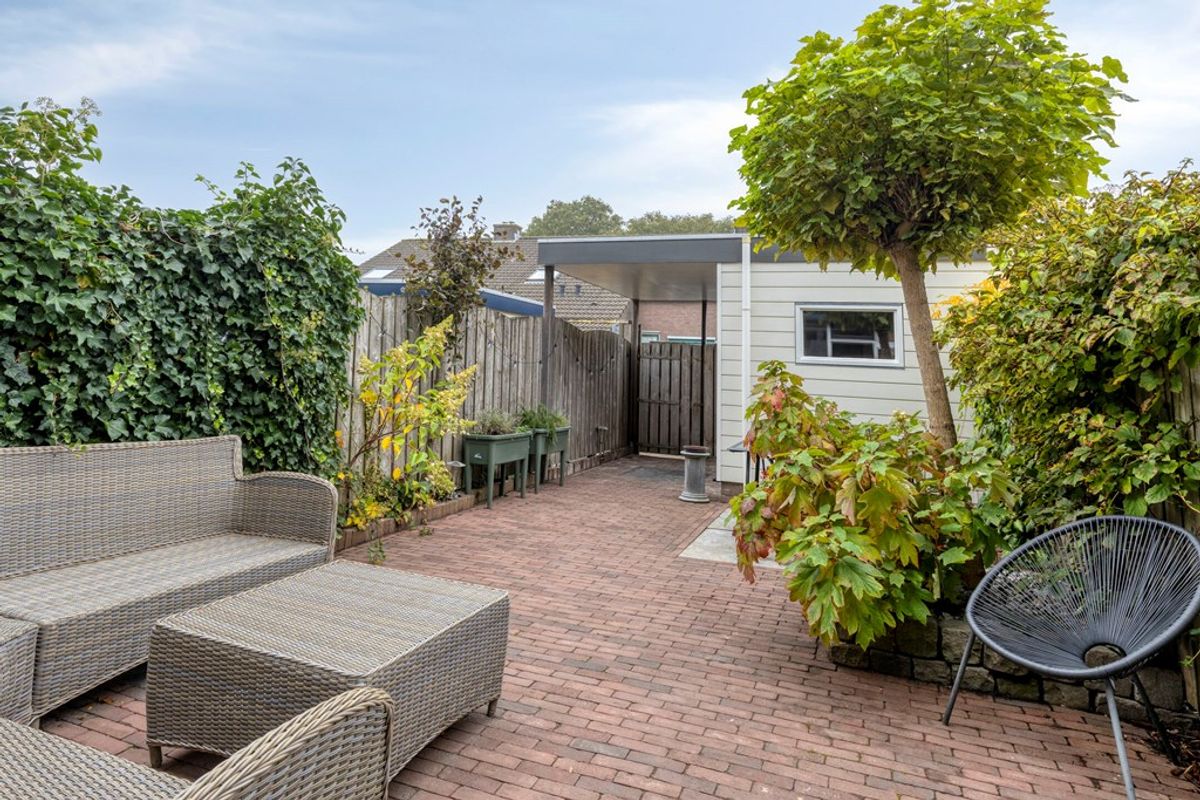 De fraai aangelegde achtertuin is een ware oase van rust. Met een gunstige ligging op het oosten, geniet u hier ’s ochtends van de eerste zonnestralen met een kop koffie. De tuin beschikt over een stenen berging met overkapping en een achterom, ideaal voor fietsen en tuingereedschap. Dankzij het zonnescherm creëert u eenvoudig schaduw op warme dagen.