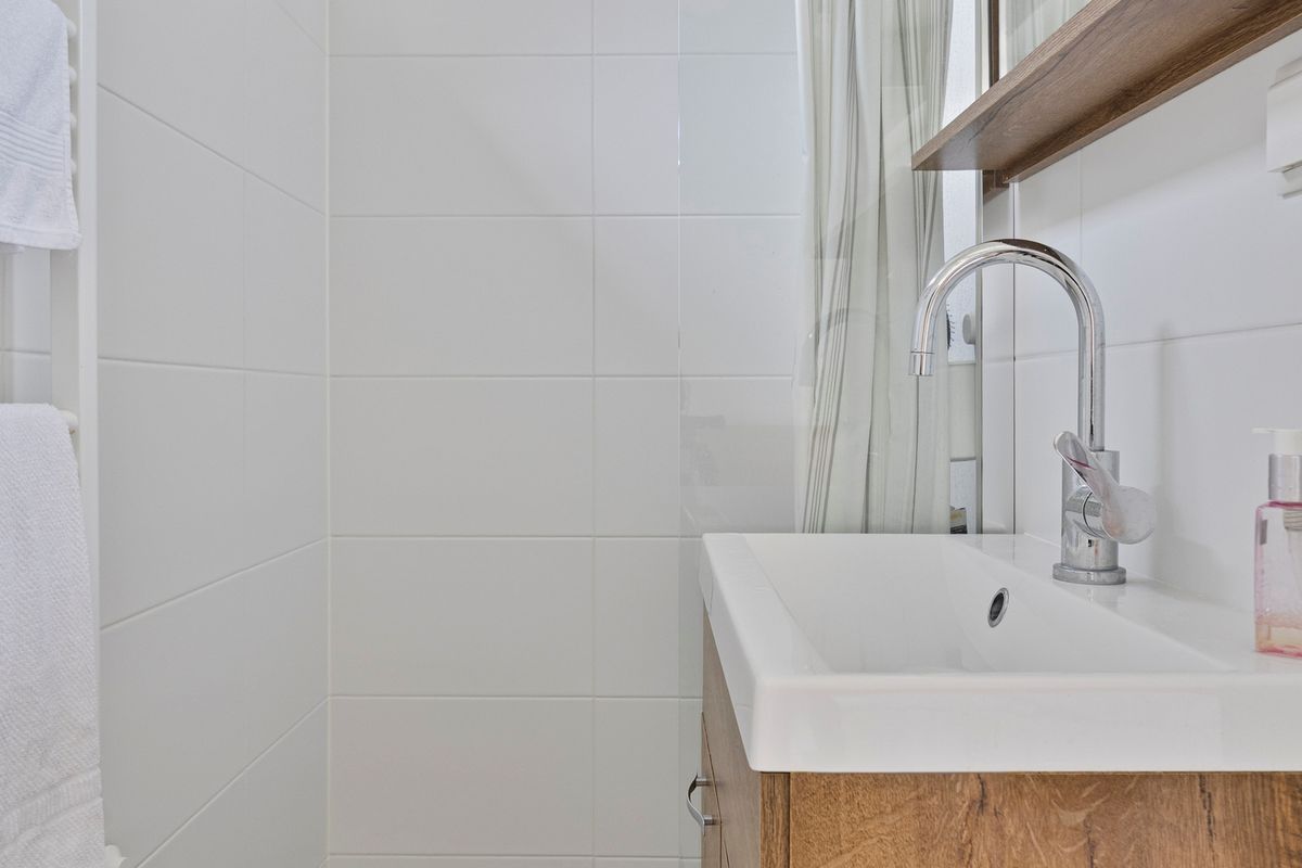 De keuken is praktisch ingedeeld en voorzien van moderne inbouwapparatuur, waaronder een inductiekookplaat, combi-oven, vaatwasser en koel-/vriescombinatie. Hier vind je ook de aansluiting voor de wasmachine. Vanuit de keuken heb je tevens toegang tot het balkon, waar je fijn kunt genieten van de buitenlucht.