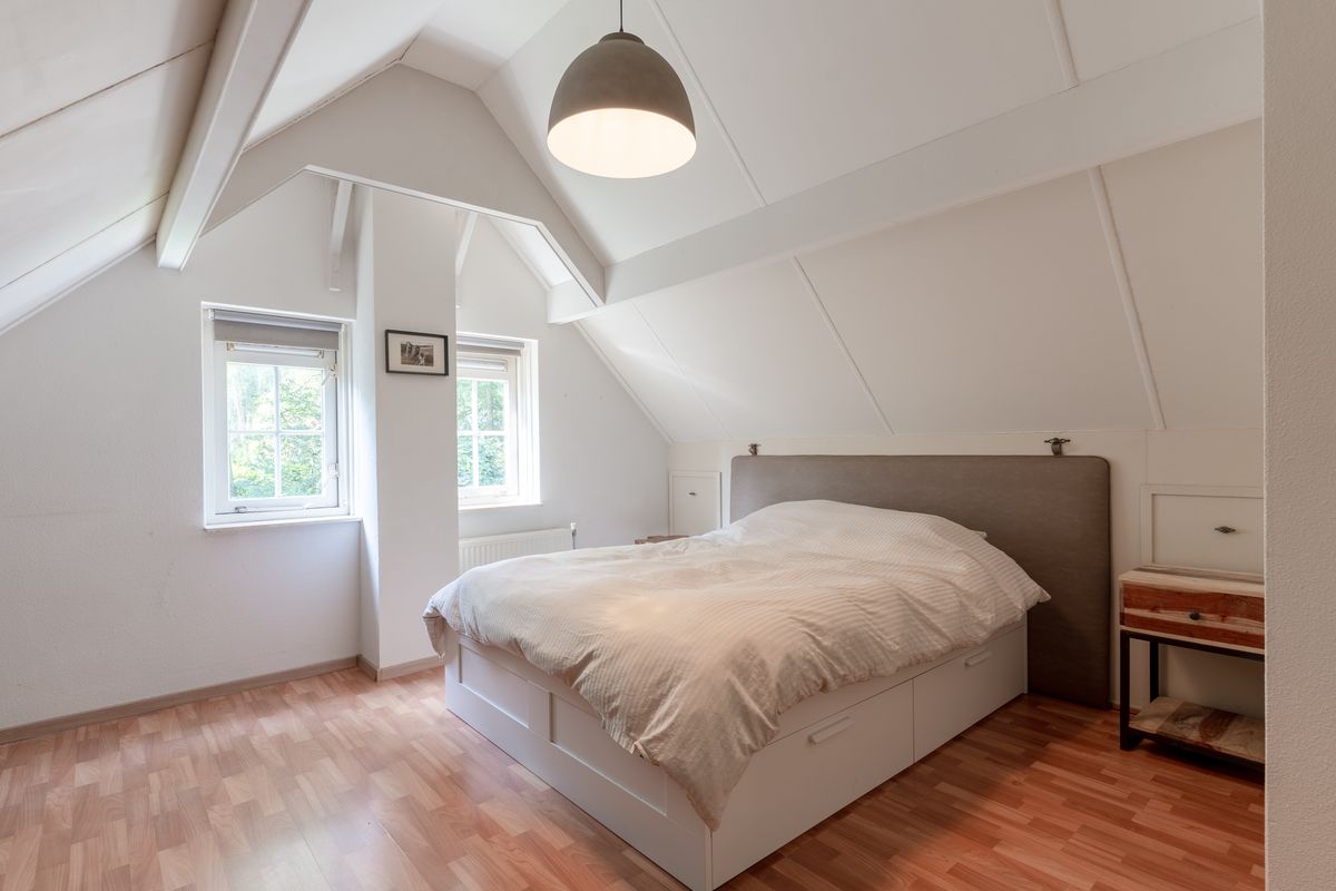 overloop, 2 slaapkamers (waarvan 1 met Frans balkon) met bergruimte in de knieschotten en een riante badkamer voorzien van douche, ligbad, toilet en wastafelmeubel.