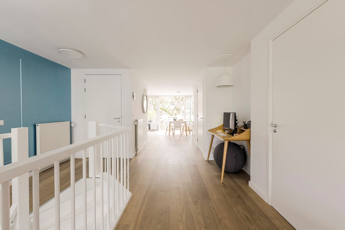 Via de keurig afgesloten centrale hal brengt de lift je naar de vierde verdieping. Ook kun je met de trap de woning bereiken. Vanuit de lift stap je zo de woonkamer in.