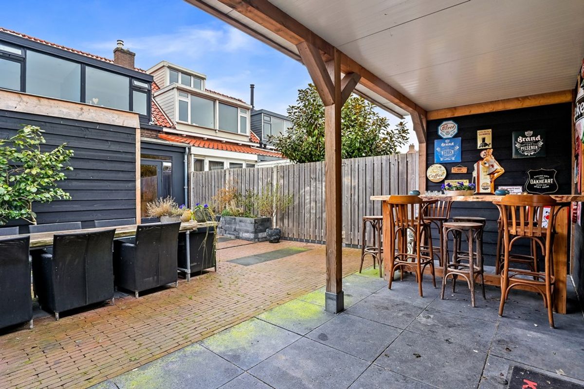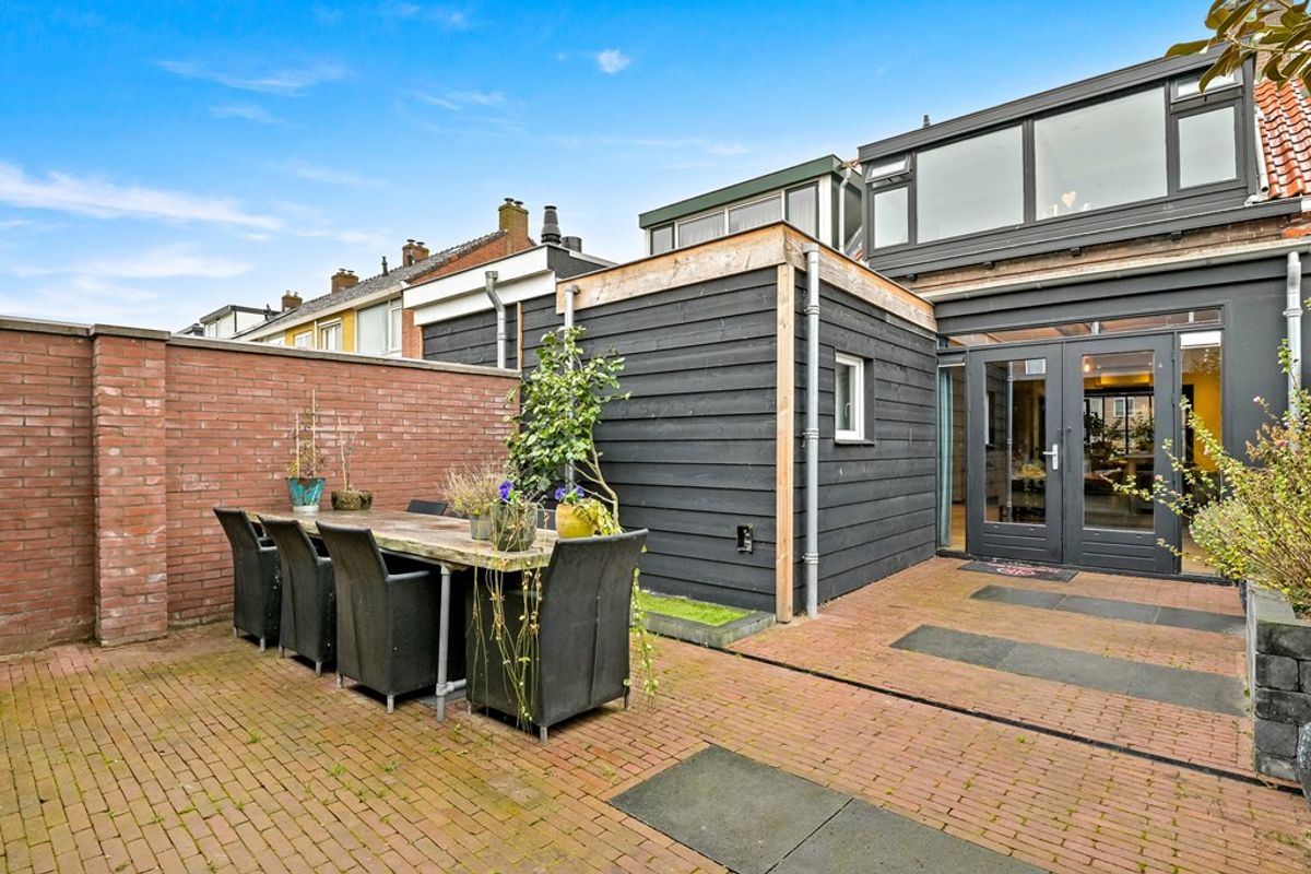 Je komt binnen via de hal met meterkast en trapopgang. Vanuit hier loop je door naar de woonkamer: een prettige, lichte leefruimte met een goede indelingsmaat voor zowel een zit- als eethoek. Aansluitend ligt de woonkeuken — het hart van het huis — met directe verbinding naar de tuin. Dankzij deze opzet is het een fijne plek om te koken, te eten en samen te komen. De luxe keuken is voorzien van diverse inbouwapparatuur. Op de begane grond bevinden zich bovendien een extra badkamer en een separaat toilet, praktisch bereikbaar via de gang aan de achterzijde. Hier zijn ook de aansluitingen voor wasmachine en droger te vinden. Buiten verrast de woning direct. Aan de achterzijde van de woning ligt een verzorgde achtertuin met overkapping, waar je het hele jaar door beschut buiten kunt zitten. Daarnaast beschikt de tuin over een royale schuur en een praktisch achterom, perfect voor fietsen, opslag of klussen. Ook de voortuin zorgt voor extra afstand tot de straat en een prettige entree.