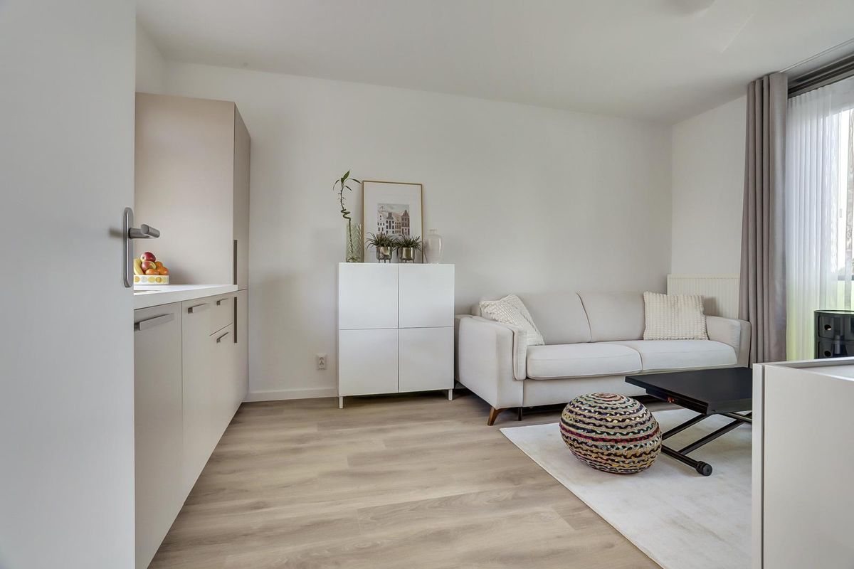 Woonkamer: Doorzon woonkamer met open keuken, nette nieuwe vloer en de wanden zijn voorzien van strak stucwerk. Je hoeft alleen nog maar je eigen meubels neer te zetten!