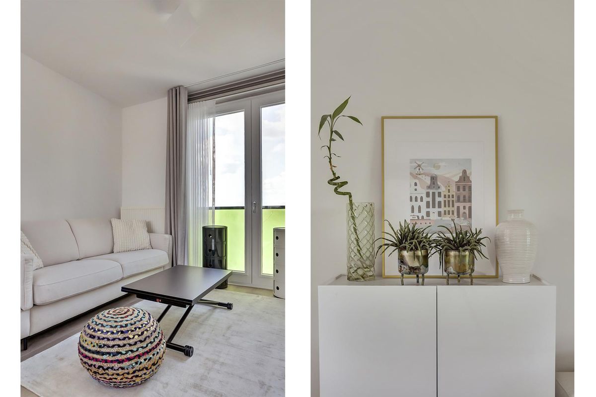Aan beide kanten is er een prachtig vrij uitzicht! En is jullie ook het prachtige lichtinval opgevallen? Dit is nou echt een fris appartement! Wellicht een eigen smaak kleur of behang op de muur, en de verhuisdozen uitpakken maar!