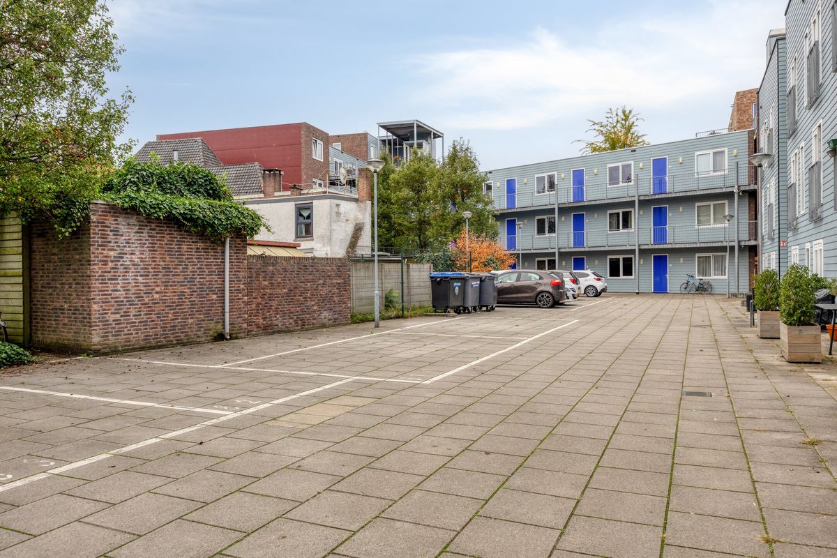 Het gebouw beschikt over een nette centrale entree met intercominstallatie, een gemeenschappelijke fietsenstalling, containerruimte en toegang tot het trappenhuis en de lift. Aan de achterzijde bevindt zich de eigen parkeerplaats, gelegen op een afgesloten terrein dat bereikbaar is via een elektrisch bedienbare toegangspoort.