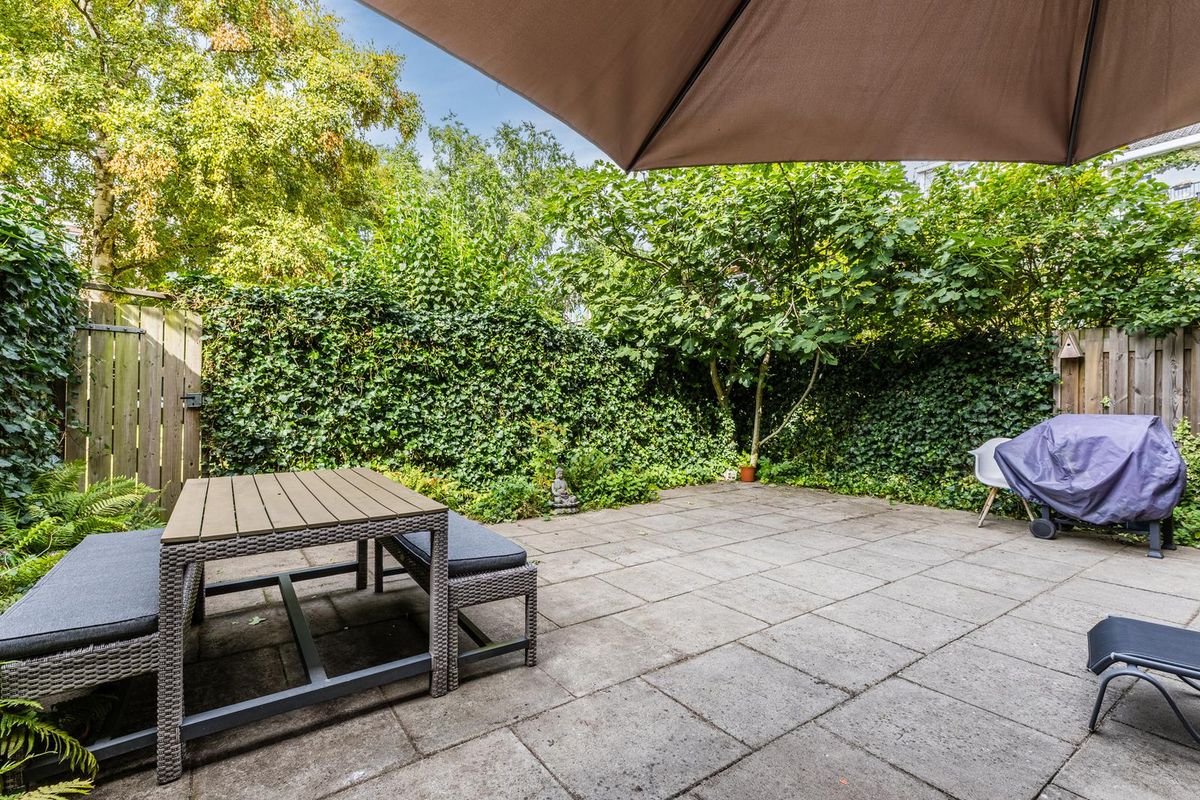 Situated in a peaceful, leafy neighborhood, with the garden bordering a small courtyard and playground, this is a perfect family home. Here you can enjoy peace, space, and privacy while having all amenities within easy reach.