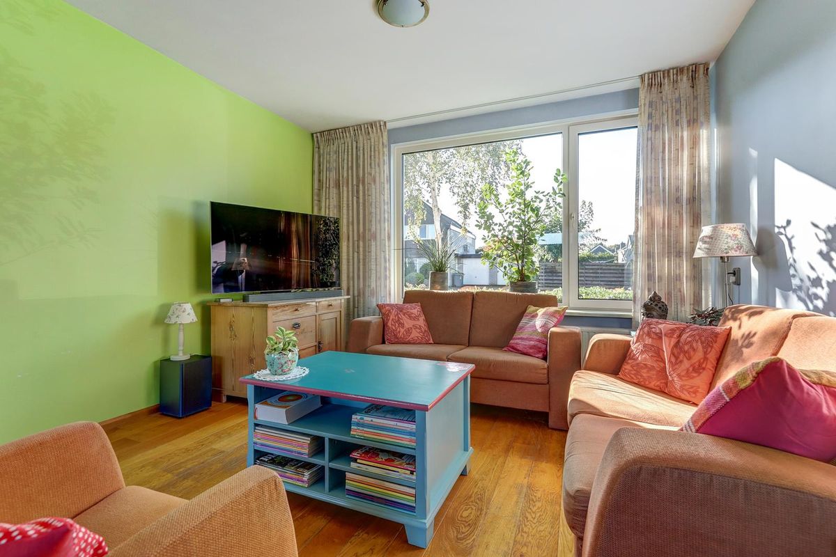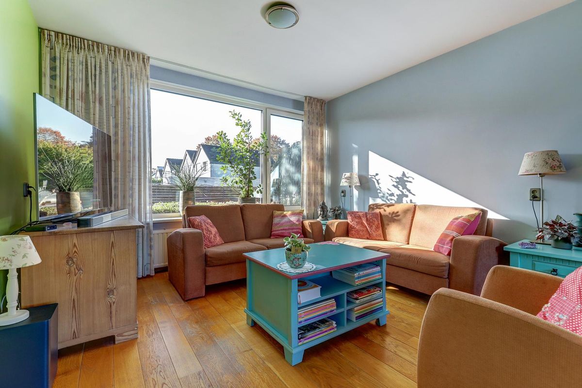 - Woonkamer: Massief eiken vloer, vlak stucwerkwanden- plafond