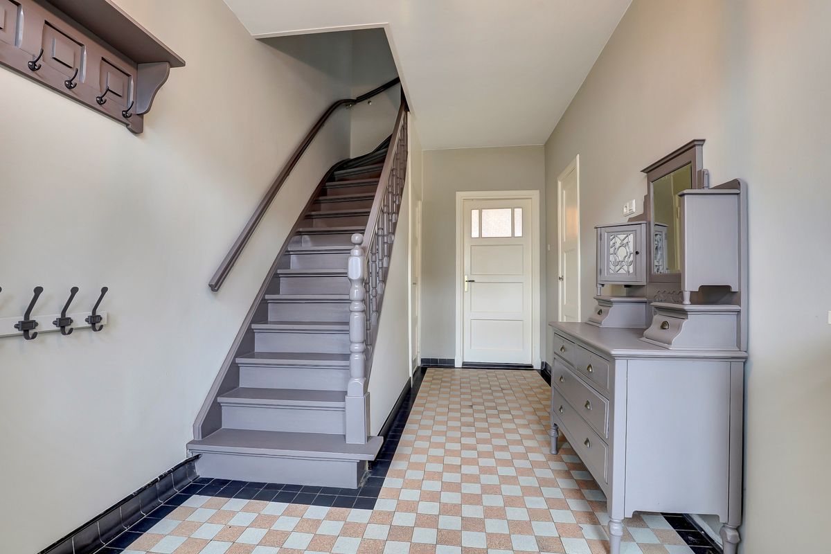 Via een charmant paadje door de verzorgde voortuin, omheind door sierlijke hekjes en groene heggen, wandel je naar de prachtige voordeur. Deze is nog maar anderhalf jaar geleden vernieuwd geheel in jaren ’30 stijl, maar met het comfort van nu. De hal verwelkomt je met een originele authentieke tegelvloer, die uitzonderlijk goed bewaard is gebleven en meteen karakter toevoegt. In de houten kast bevindt zich de meterkast met glasvezelaansluiting, terwijl een handige garderobekast zorgt voor een opgeruimde entree. Achter een deur ligt de trap naar de kelder waar een stalen poortje toegang geeft tot de wijnkelder. De ruimte is ideaal voor het bewaren van wijn maar natuurlijk ook voor voorraad of andere spullen. In de kelder is ook de verdeler van de vloerverwarming geplaatst en bovenaan bij de trap hangt de Nefit CV ketel (2018).