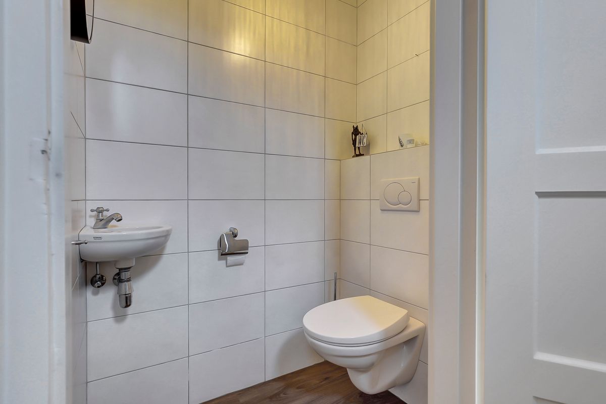 Vanuit de hal loop je door naar de ruime woonkeuken, het hart van het huis. Hoewel de keuken al meer dan vijftien jaar geleden is geplaatst, oogt ze nog steeds tijdloos en sfeervol. De landelijke kastfronten, gecombineerd met het donker granieten werkblad, geven de ruimte een warme, huiselijke uitstraling. Kookliefhebbers kunnen hier hun hart ophalen met maar liefst zes gaspitten, een dubbele oven en een combimagnetron. Verder is de keuken uitgerust met een grote koelkast, vaatwasser en een praktische muurkast voor extra opbergruimte. Er is voldoende plek voor een eettafel en een airco zorgt voor een aangenaam binnenklimaat. Achter de keuken ligt een praktische bijkeuken met een wasbak, inbouwkasten en een toiletruimte met wandtoilet en fonteintje. Zowel vanuit de keuken als de bijkeuken stap je zo de achtertuin in, een fijne verbinding tussen binnen en buiten.