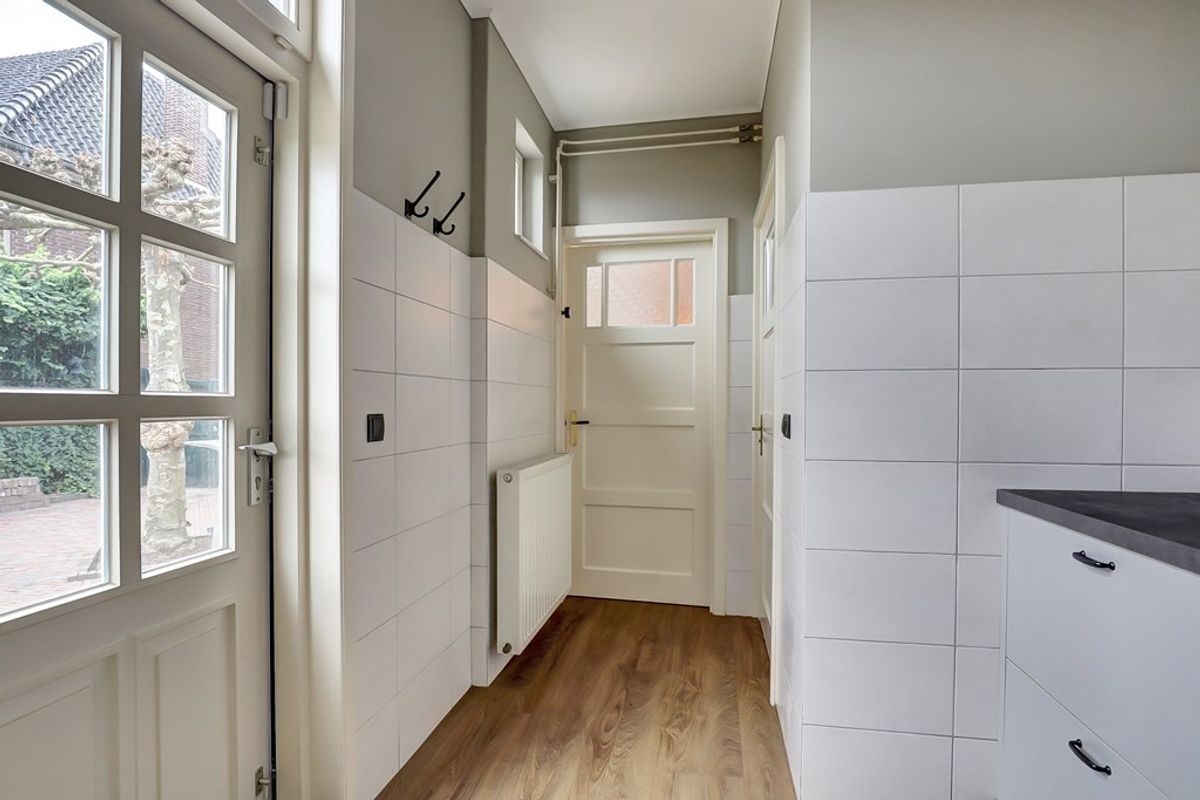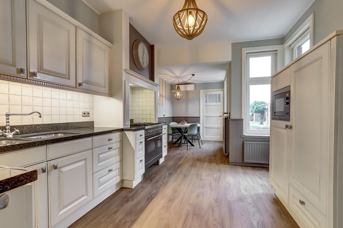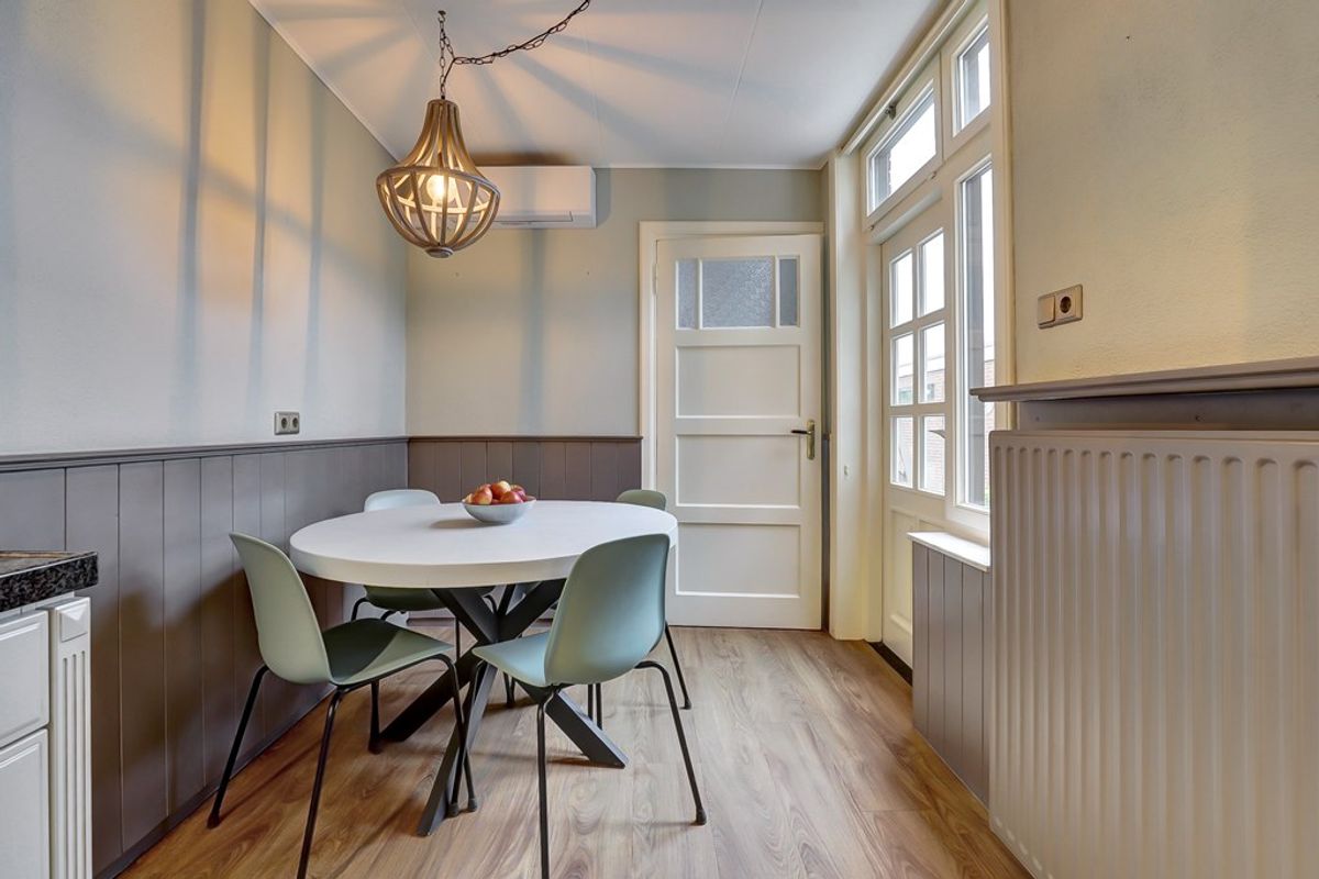 Deze prachtig gerenoveerde jaren ’30 woning combineert authentieke charme met stijl en hedendaags wooncomfort. Vanaf het moment dat je hier binnenloopt, voel je de warme sfeer en zie je het vakmanschap waarmee de woning is gemoderniseerd met behoud van de originele details. De ruime woonkamer ademt karakter dankzij de typische jaren ’30 erker, hoge plafonds en de sfeervolle houtkachel die uitnodigt tot lange avonden bij het haardvuur. Aan de achterzijde ligt de landelijke keuken, voorzien van een gezellige schouw en alle moderne gemakken. Achter de keuken bevindt zich nog een praktische bijkeuken, ideaal met een extra keukenblokje en bergruimte. Op de eerste verdieping liggen drie slaapkamers waarvan twee royale kamers en een derde, compacte kamer die perfect dienst kan doen als werk- of kinderkamer. De badkamer is stijlvol en praktisch ingericht met een inloopdouche en een ligbad, een fijne plek om te ontspannen na een lange dag.