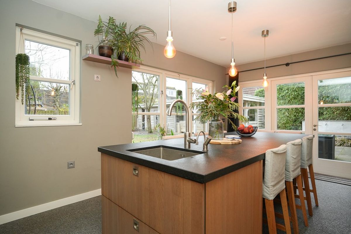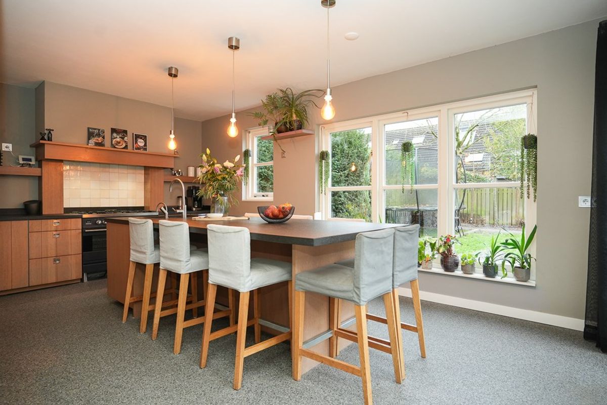 De keuken vormt een centraal hart van het huis. Het grote kookeiland, de riante werkbladen en het uitzicht op de tuin maken dit een prachtige plek om te koken en samen te zijn. Via dubbele openslaande deuren vloeit de ruimte op mooie dagen naadloos over in de achtertuin. Grenzend aan de keuken bevindt zich een extra kamer, ideaal als werkplek, speelruimte of hobbykamer.