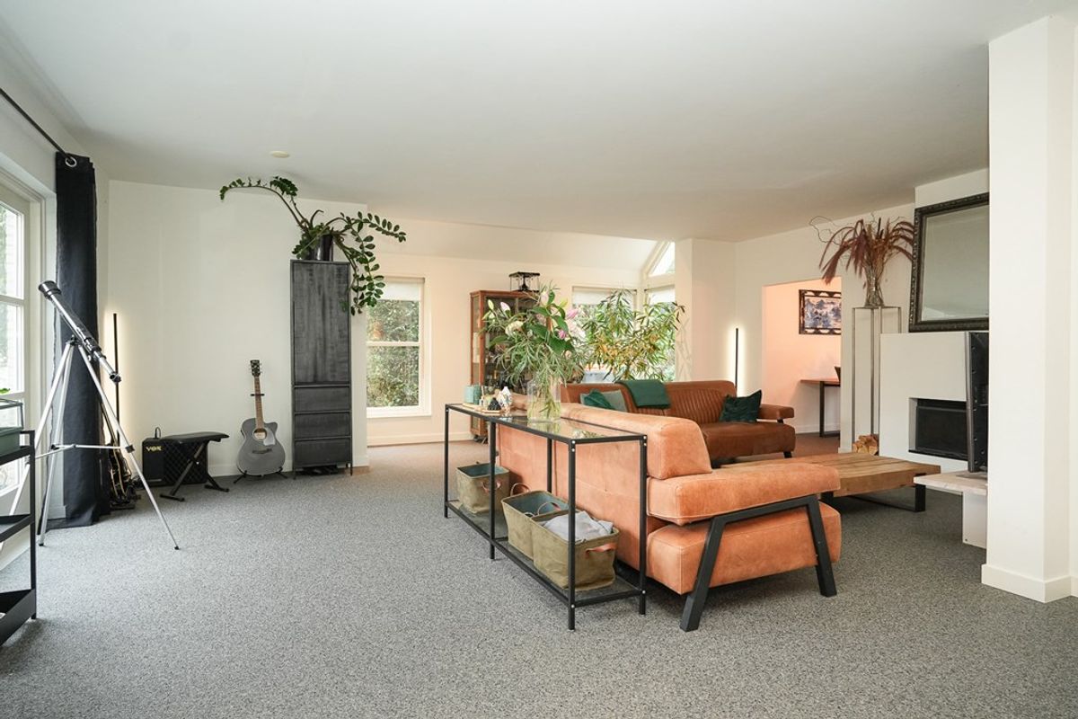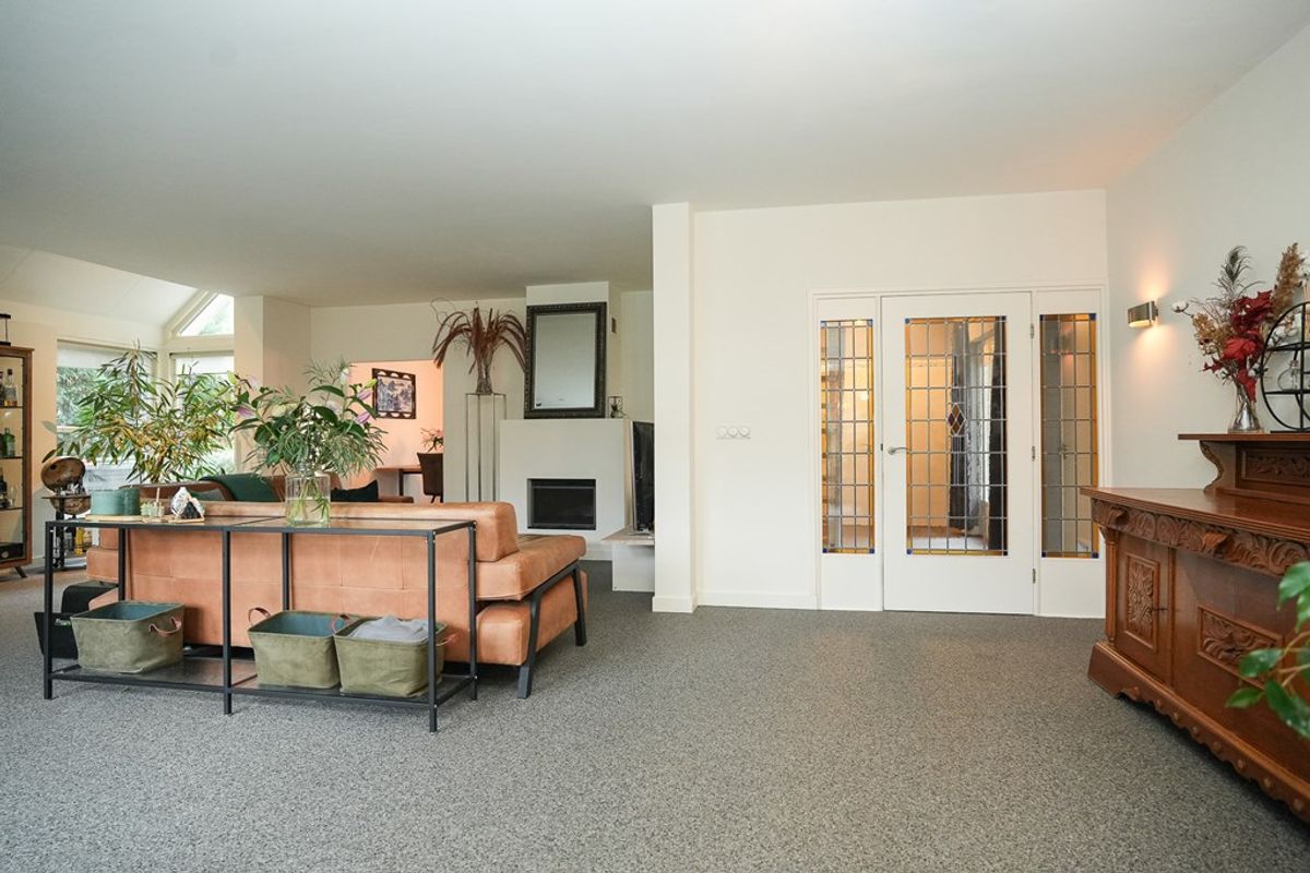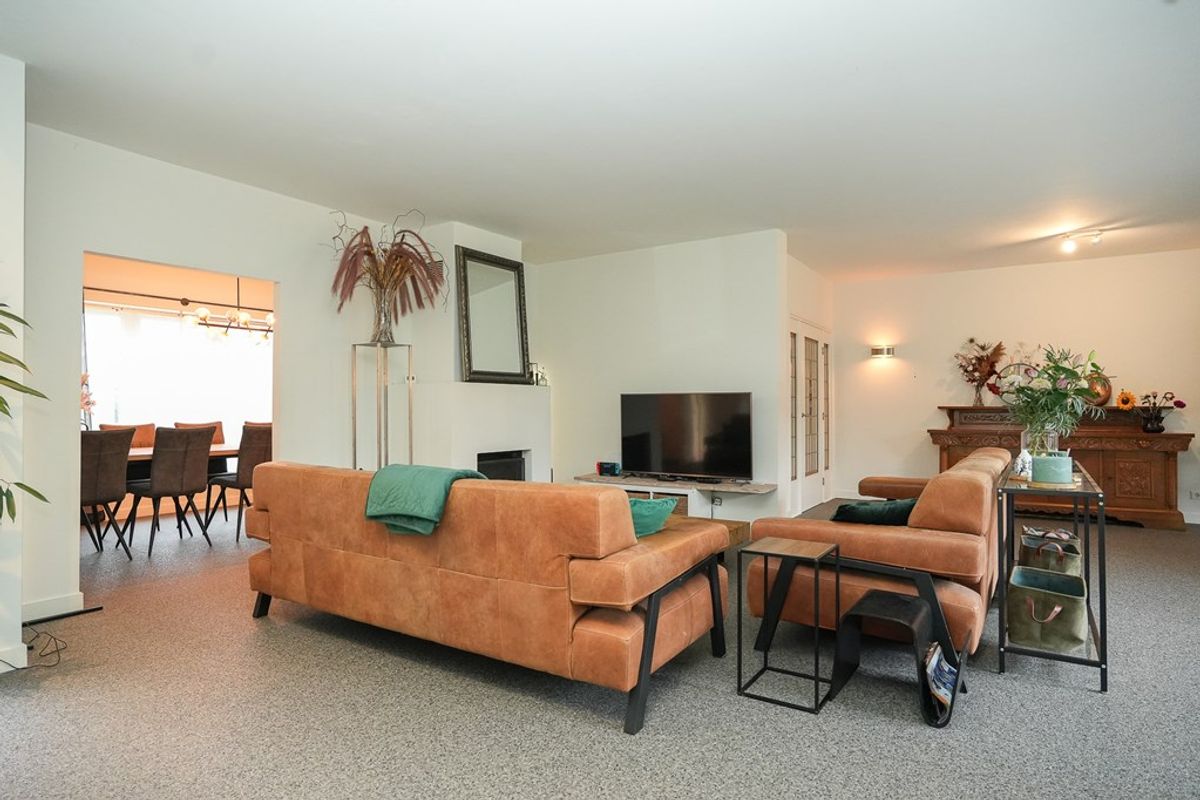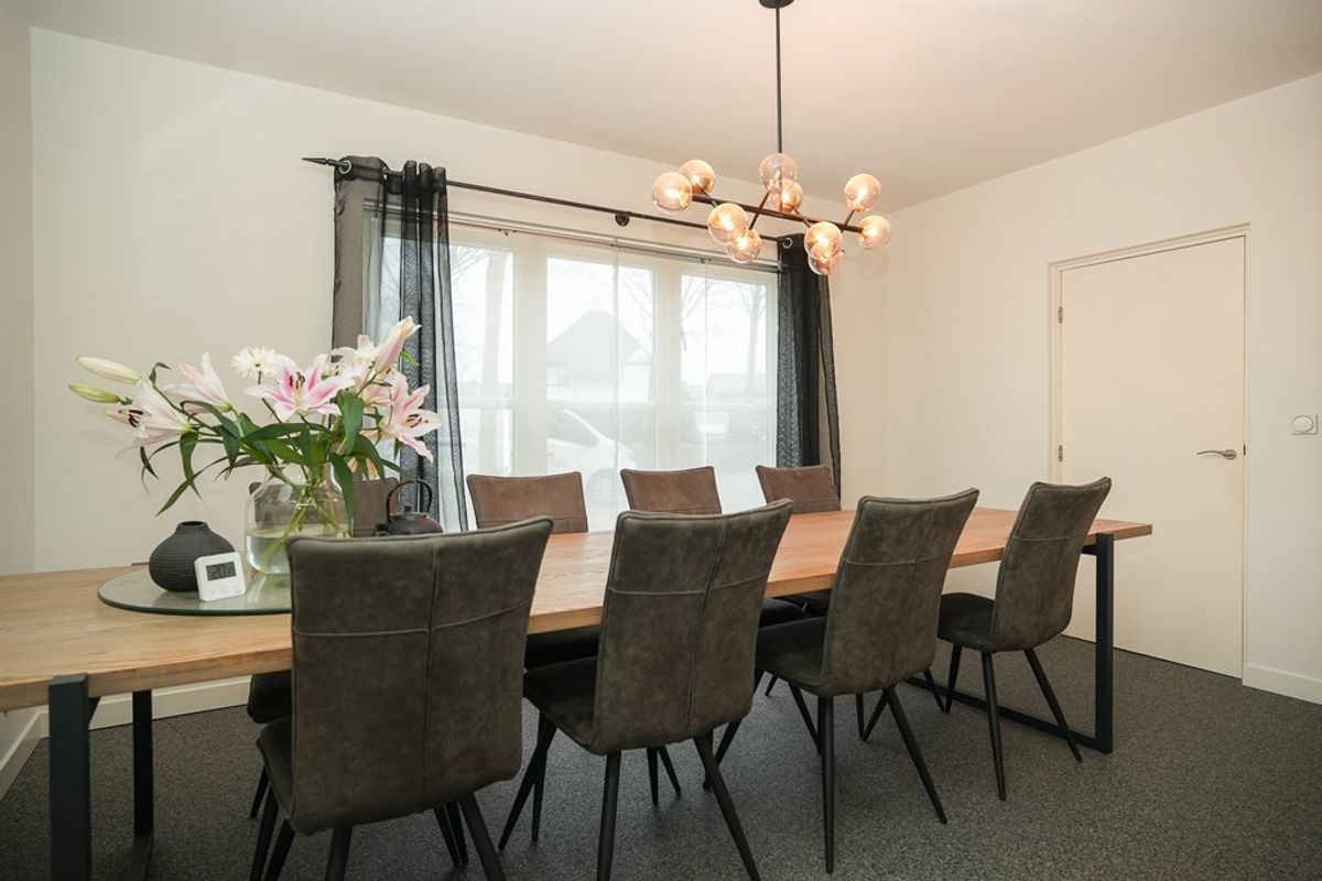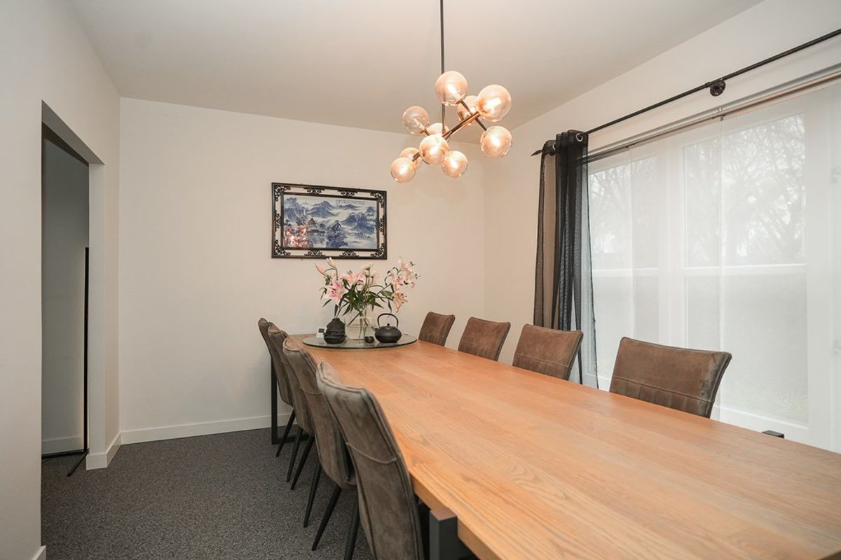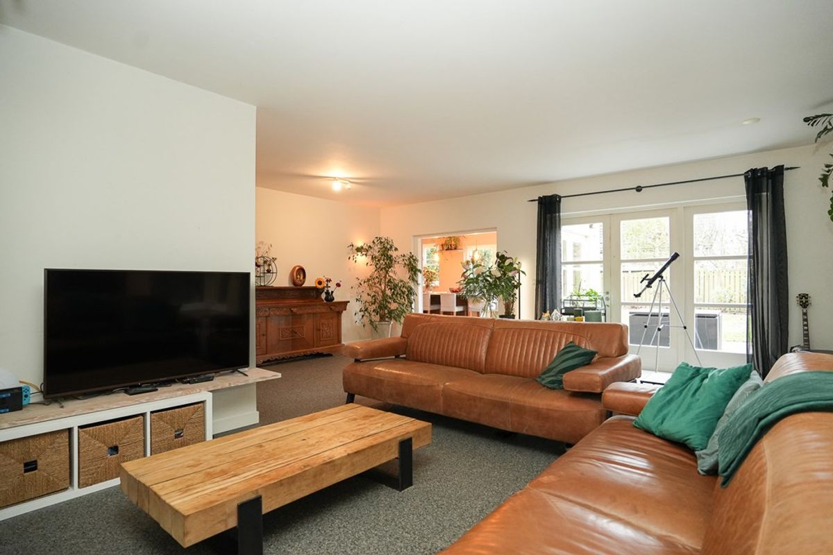 De woonkamer is licht, ruimtelijk en biedt meerdere fijne zitplekken. Grote raampartijen zorgen voor een constante verbinding met de tuin. De aangrenzende eetkamer is royaal van formaat en vormt een perfecte plek voor lange avonden tafelen met vrienden en familie.
