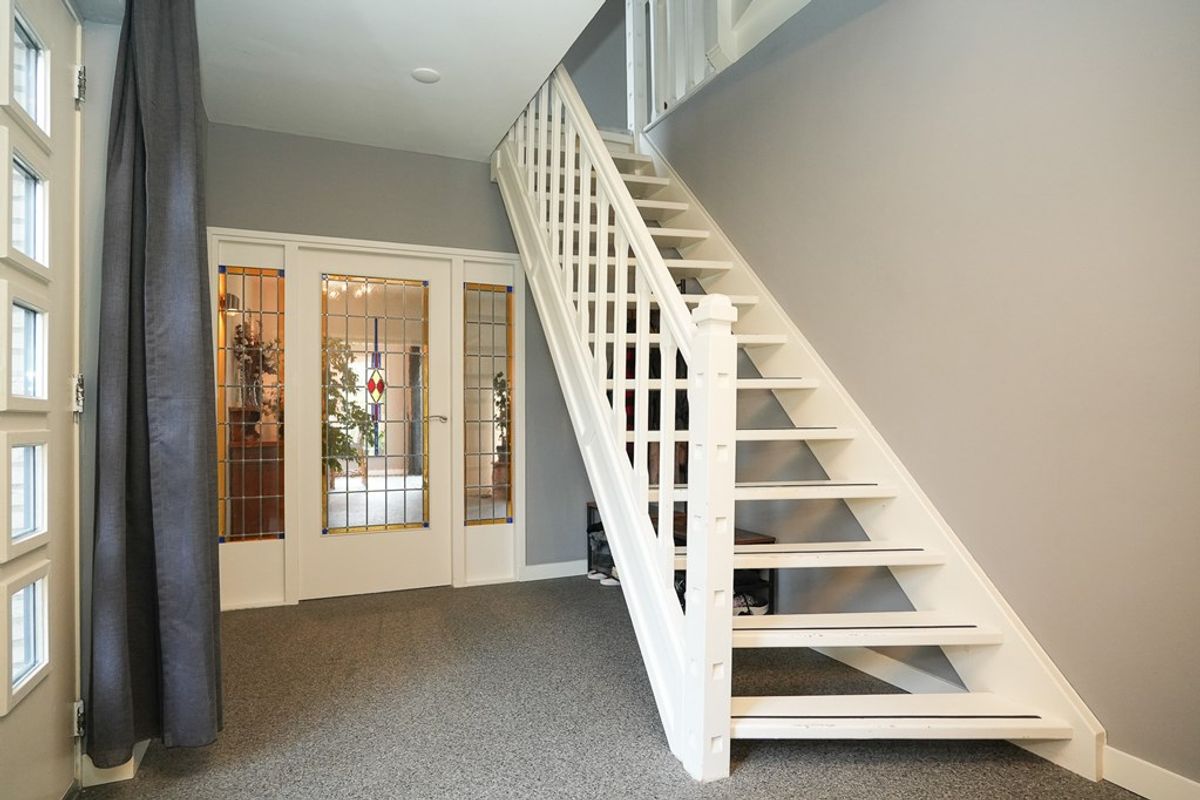 De entree voelt ruim en welkom, met zichtlijnen die nieuwsgierig maken naar de rest van het huis. Vanuit de hal zijn de woonkamer, eetkamer, keuken en extra kamer bereikbaar.