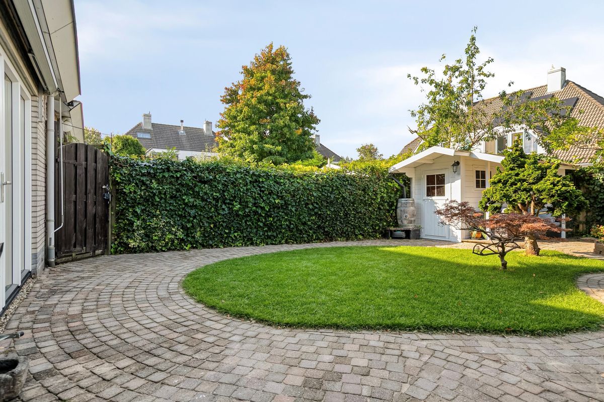 De voortuin biedt plaats aan de oprit met parkeerplaats voor de auto op eigen grond. De voortuin is voorzien van diverse beplanting en geeft toegang tot de entree. Tevens heeft u via de zijkant direct toegang tot de achtertuin.