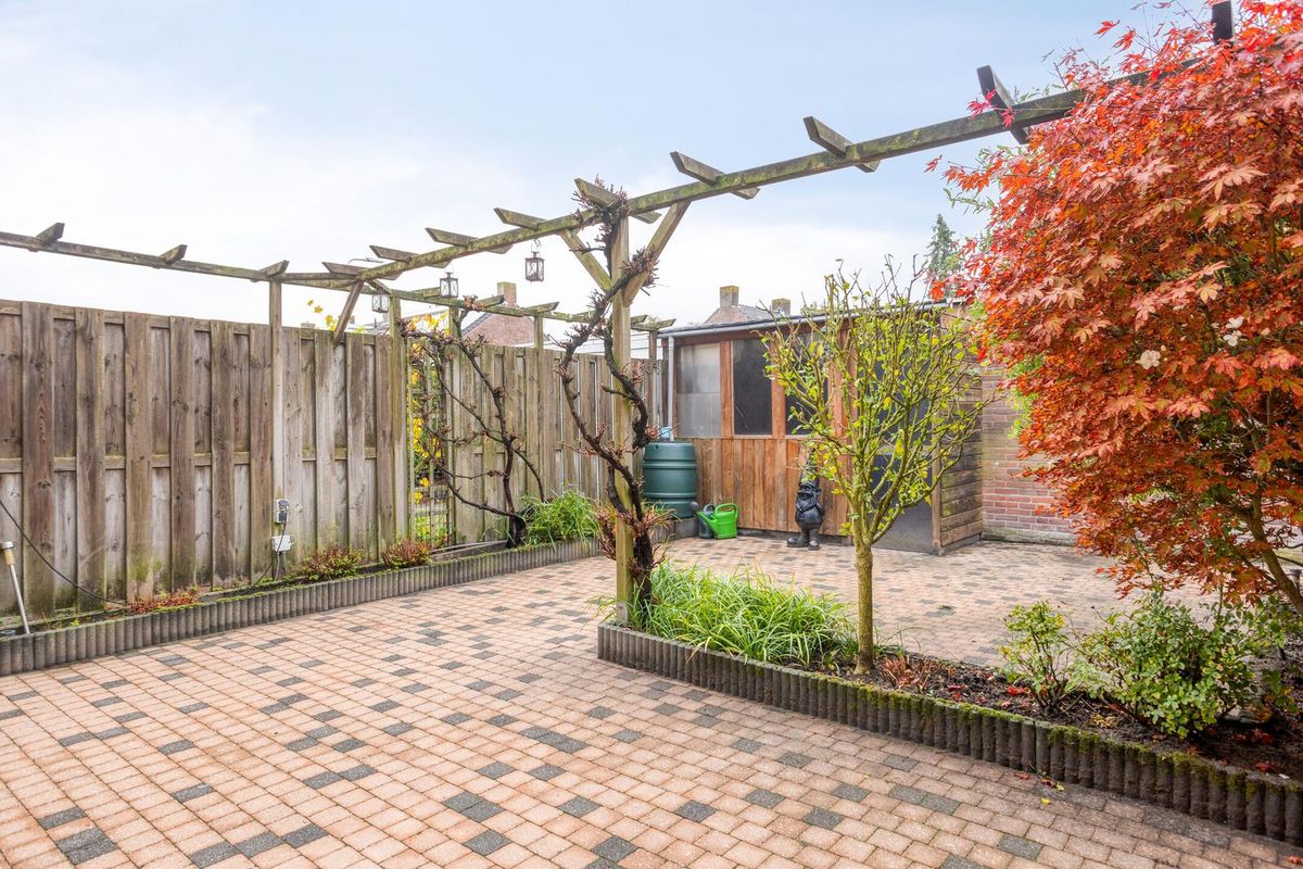 De achtertuin is keurig aangelegd en volledig betegeld, met groene accenten door de plantenborders. Aan de achterzijde vind je een stenen berging én een fijne houten overkapping waar je lekker beschut kunt zitten. Genieten van het buitenleven met minimale onderhoudsinspanning!