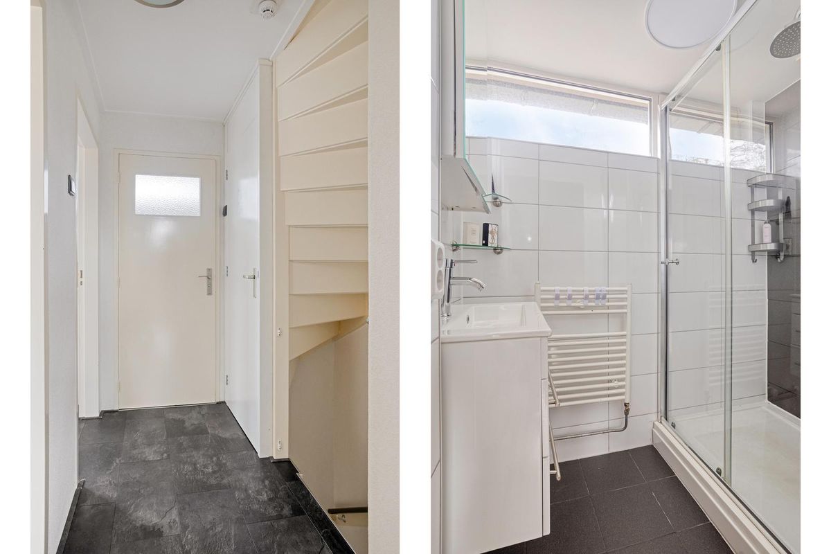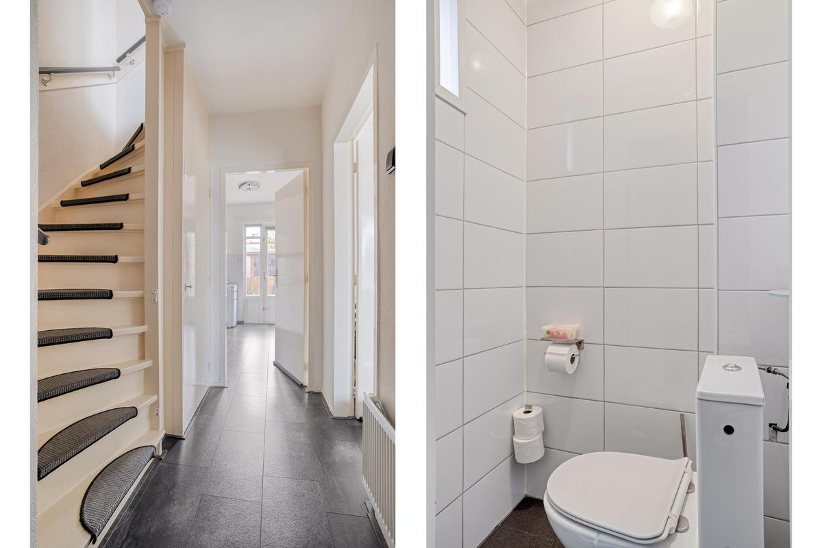 Parkeer je auto gemakkelijk voor de deur en loop via de onderhoudsvriendelijke voortuin naar de voordeur. De hal verwelkomt je stijlvol met een donkere vloer en strakke witte wanden. Vanuit hier heb je toegang tot het moderne toilet, de trap naar boven, de trapkast, de woonkamer én de gesloten keuken. Een praktische en uitnodigende binnenkomst!