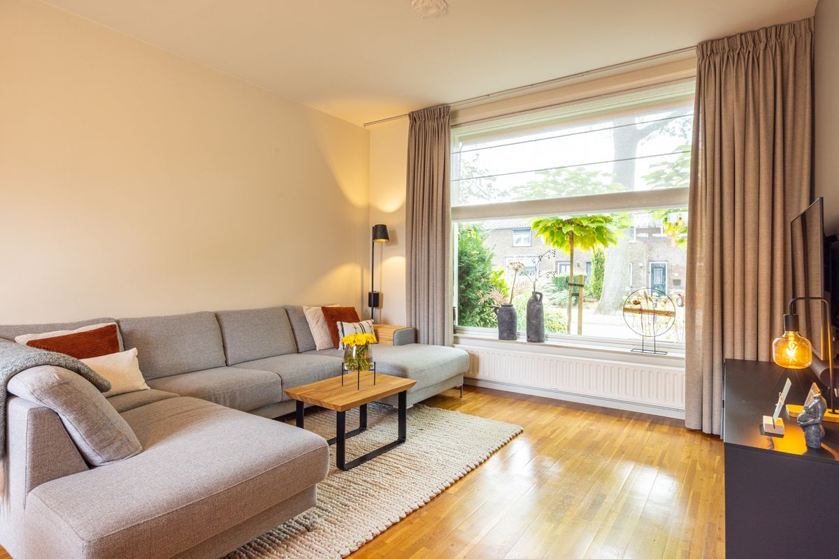 De fraai aangelegde achtertuin met ruim terras, gazon en achterom maakt het geheel compleet. Een ideale woning voor wie comfortabel wil wonen in een rustige straat, met alle voorzieningen binnen handbereik.