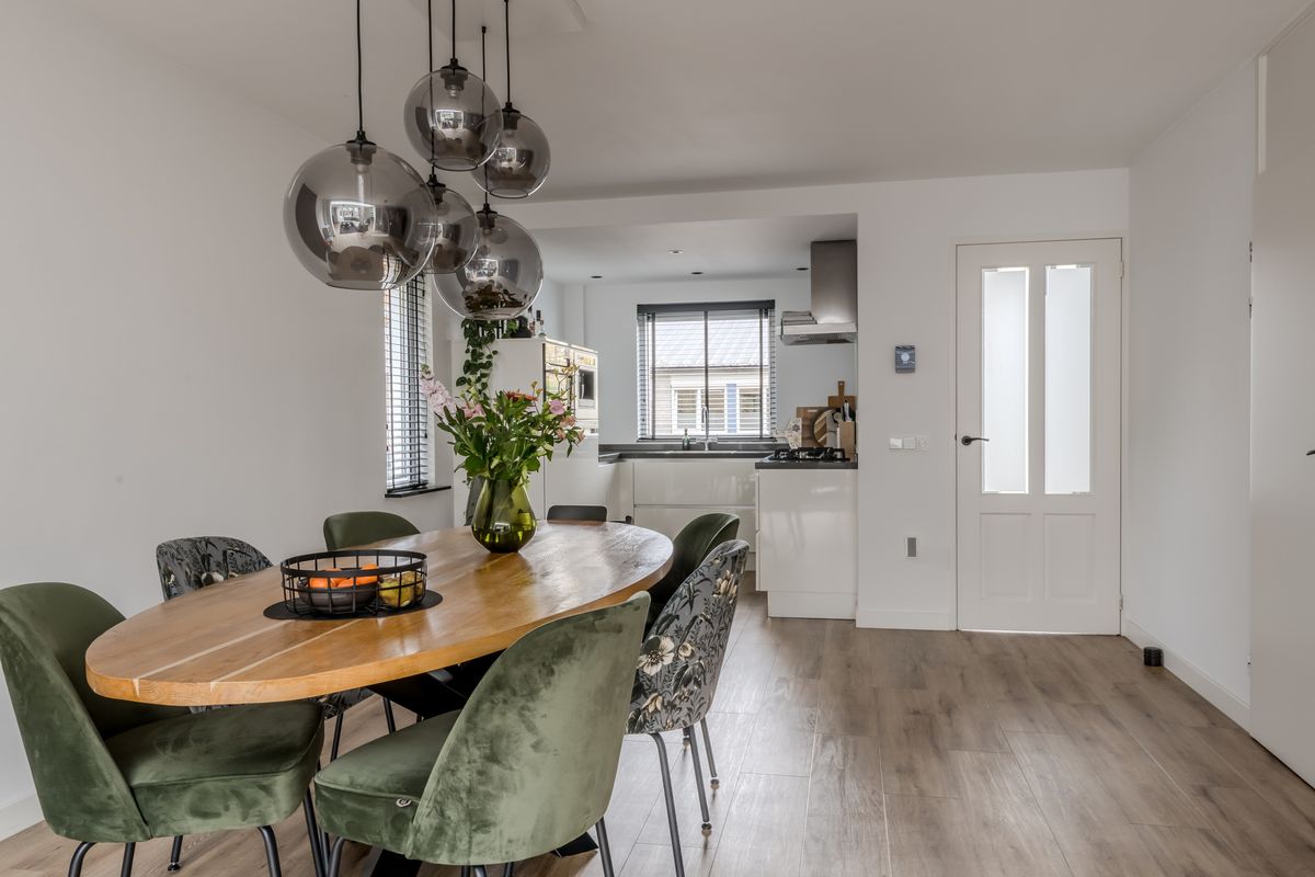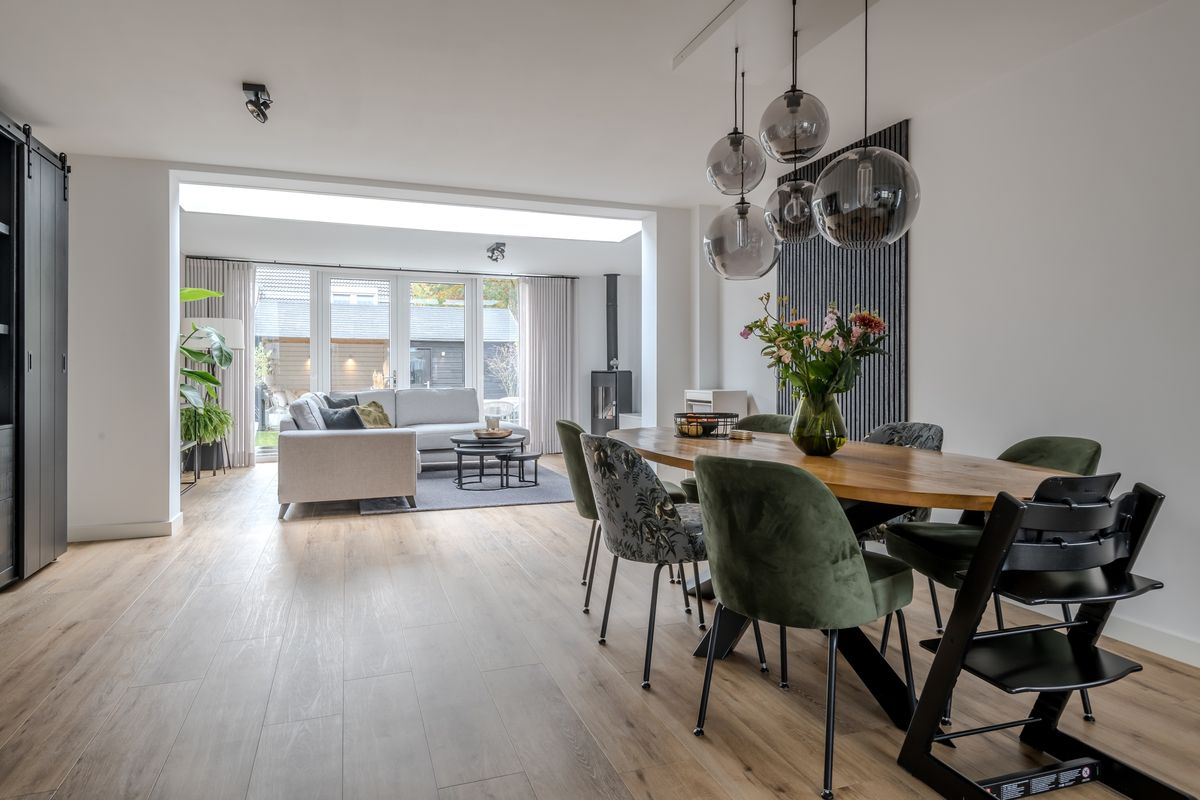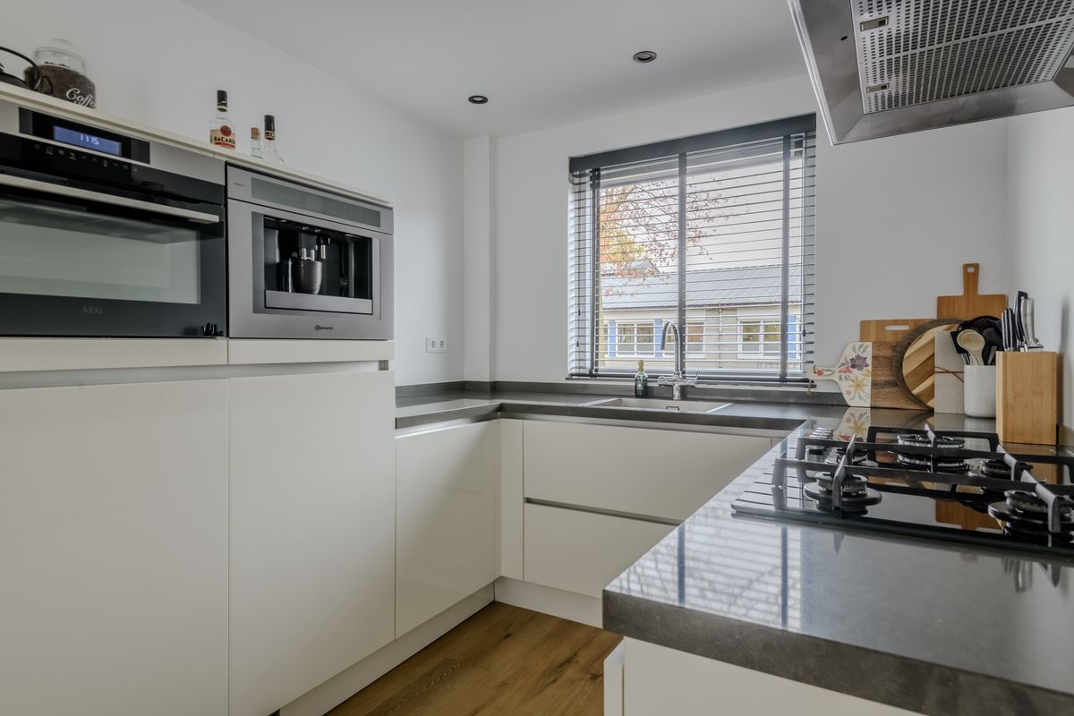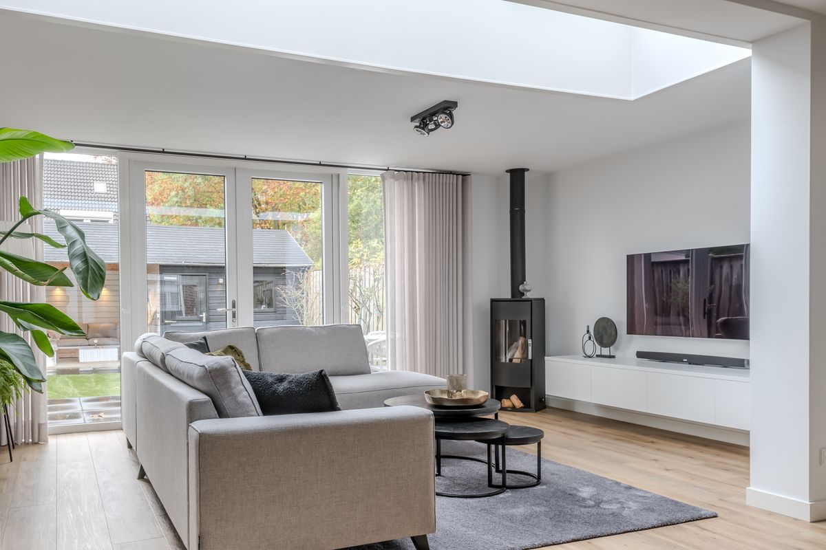 U komt binnen in een hal met meterkast, zwevend toilet (2023), met fonteintje, trapopgang en toegang tot de woonkamer. De royale uitgebouwde woonkamer is voorzien van openslaande tuindeuren naar het gezellige terras in de achtertuin. Voor extra lichtinval is er in de uitbouw een lichtstraat geplaatst en verder is de woonkamer van een sfeervolle (gas)kachel voorzien. Aan de voorzijde van de woning ligt de moderne keuken, voorzien van diverse inbouw apparatuur zoals een 5 pits gas kookplaat, een combi-oven magnetron, een ingebouwd koffiezetapparaat, afzuigkap, vaatwasser en een koelkast.