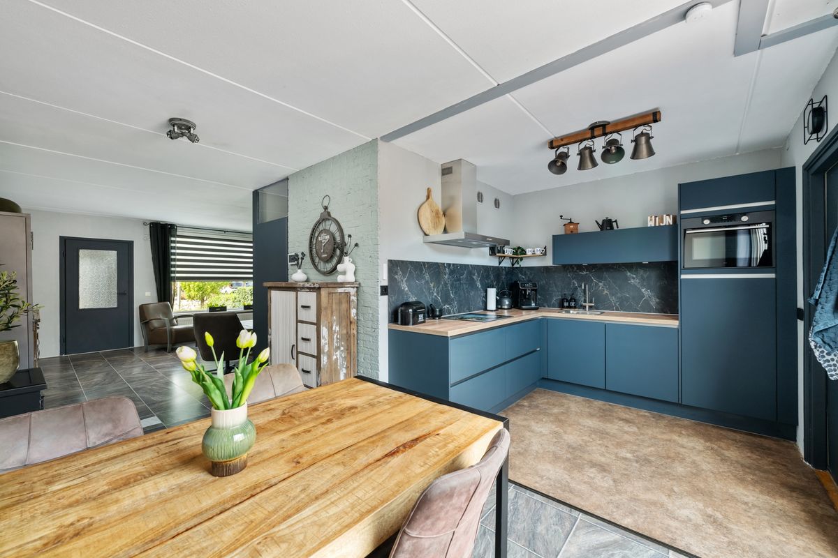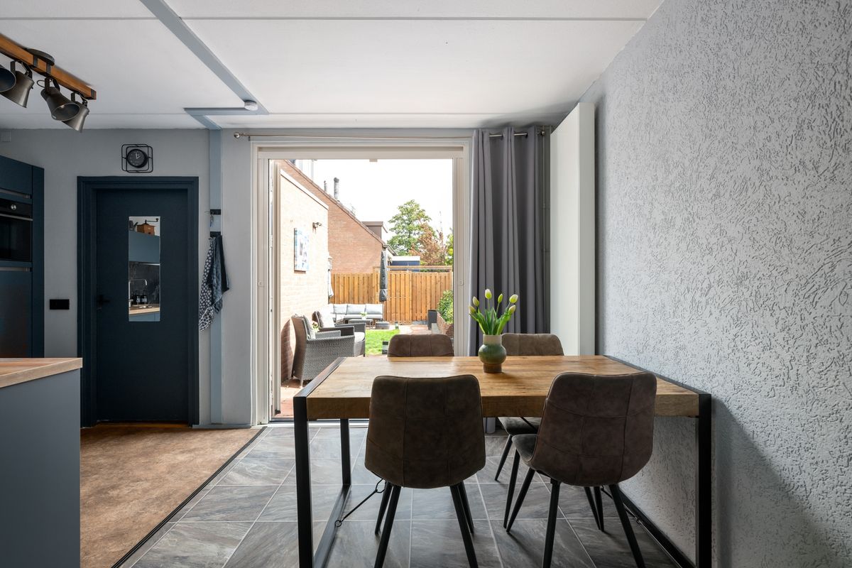 De keuken is in 2024 volledig vernieuwd en heeft een moderne strakke uitstraling. Vanuit de keuken kijk je uit op de zonnige achtertuin. Door de verschillende terrassen is er op elk moment van de dag een plek in de zon te vinden -- ideaal voor ontspanning, spelende kinderen of een gezellige borrel.