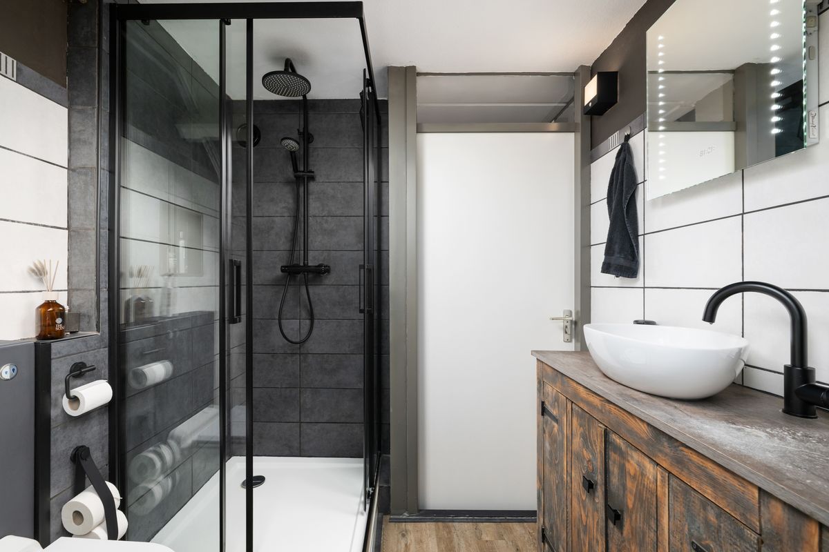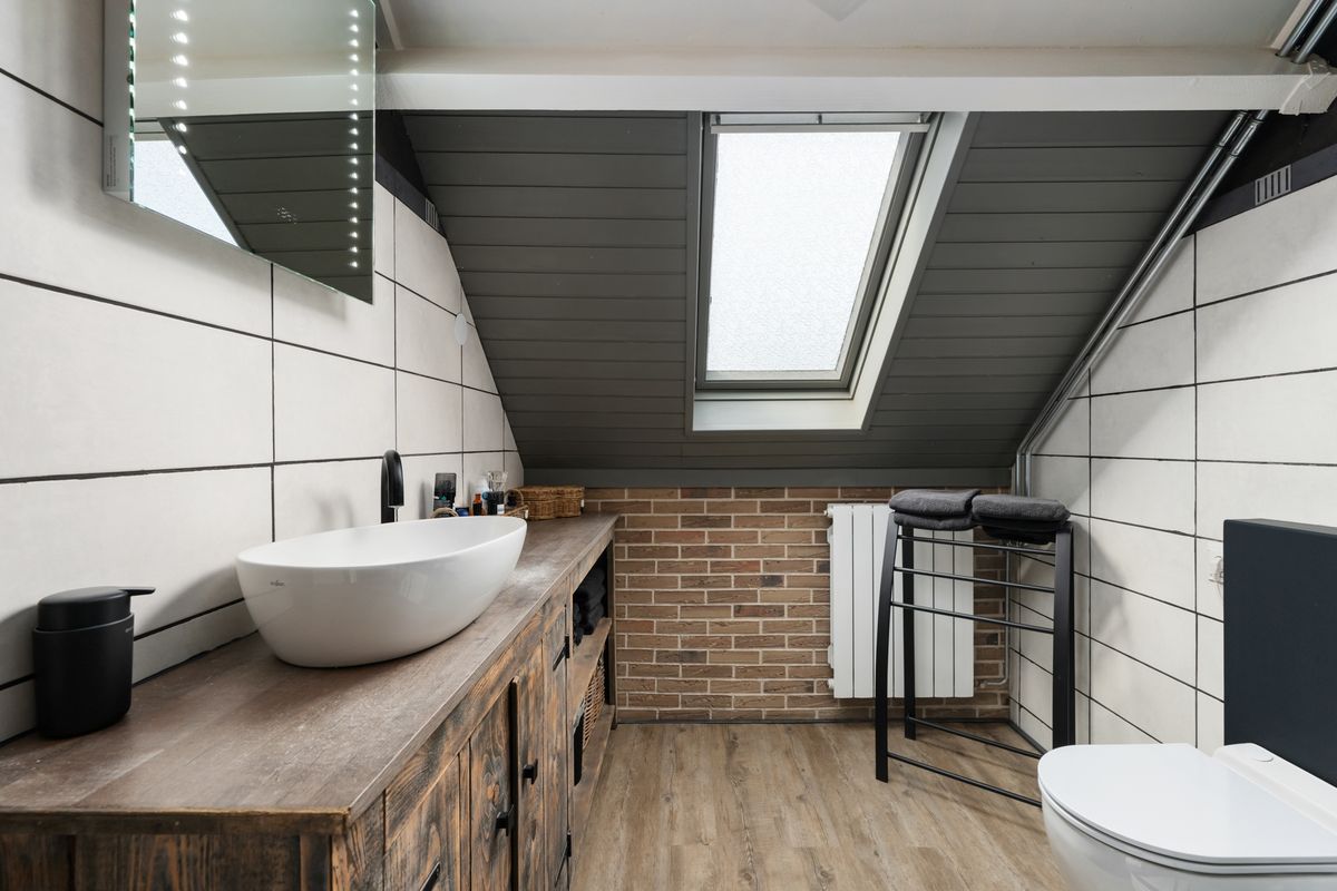 Modern uitgevoerde, goed ingedeelde badkamer (ca. 2.30m x 2.07m) vernieuwd in 2020 met inloopdouche, wastafelmeubel met verlichte spiegel en 2e toilet.